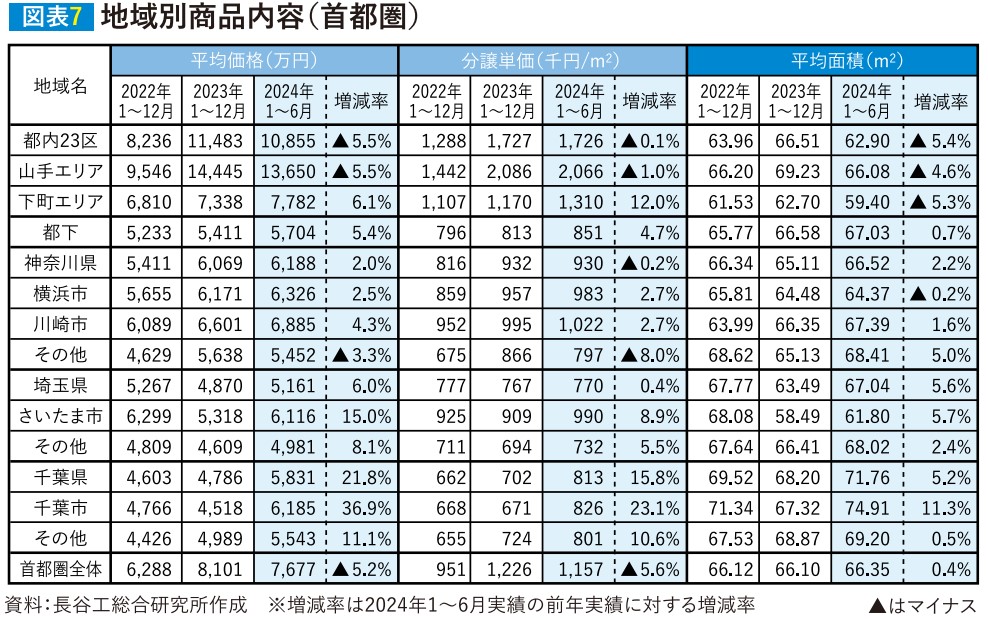 みられ、販売面でも初月販売率は70%を上回るなど、前年同期とは供給傾向に違いがみられる。また商品内容についても、首都圏では