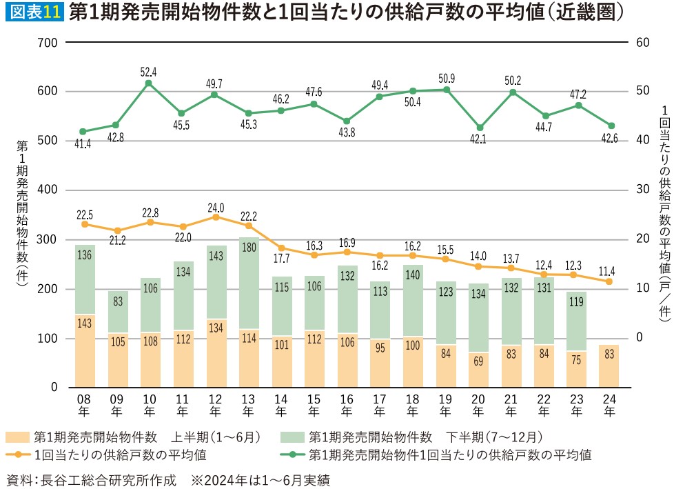 新規供給戸数の小分け化や時間をかけた販売の傾向は継続しているものの、下半期は首都圏では都心部、近畿圏では近郊で複数の