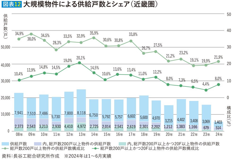 (図表12)。前年同期は第1期販売開始物件の中で総戸数200戸以上の大規模物件は4件、うち20階以上の超高層物件は供給が