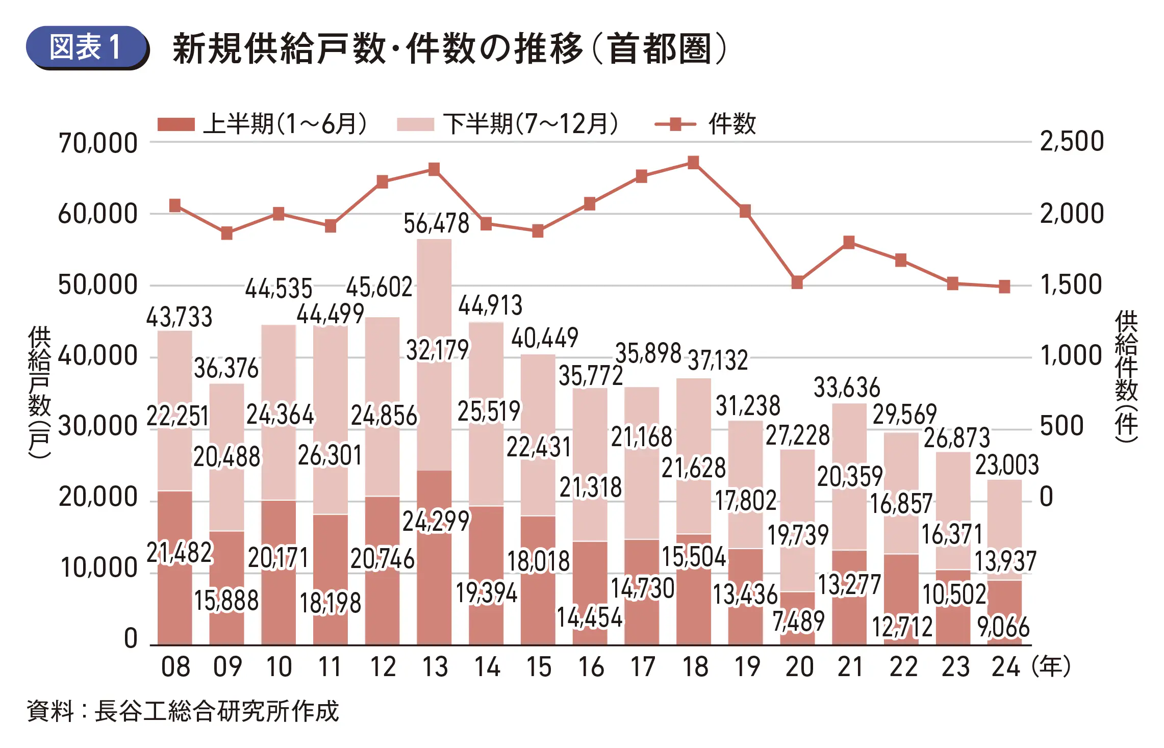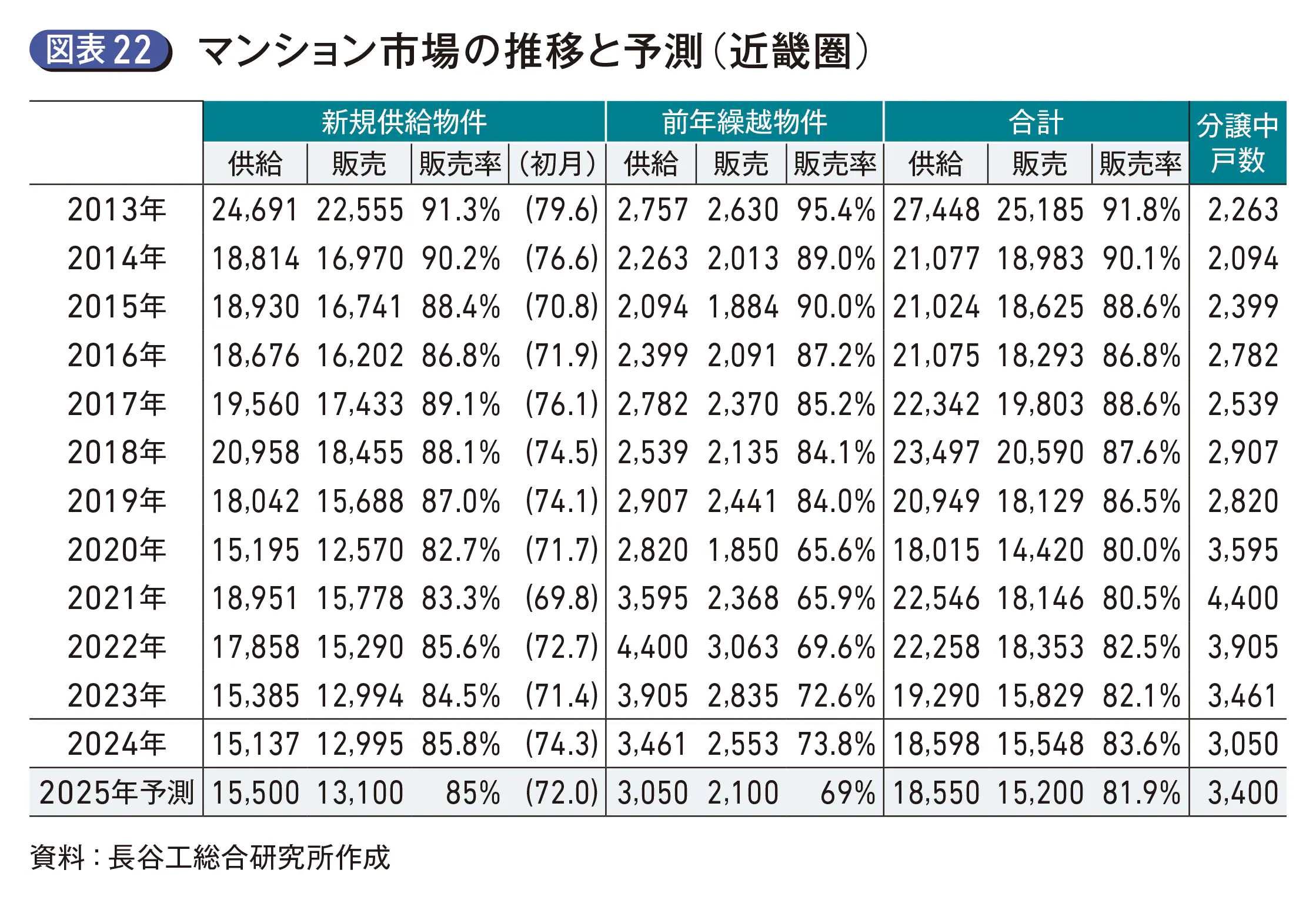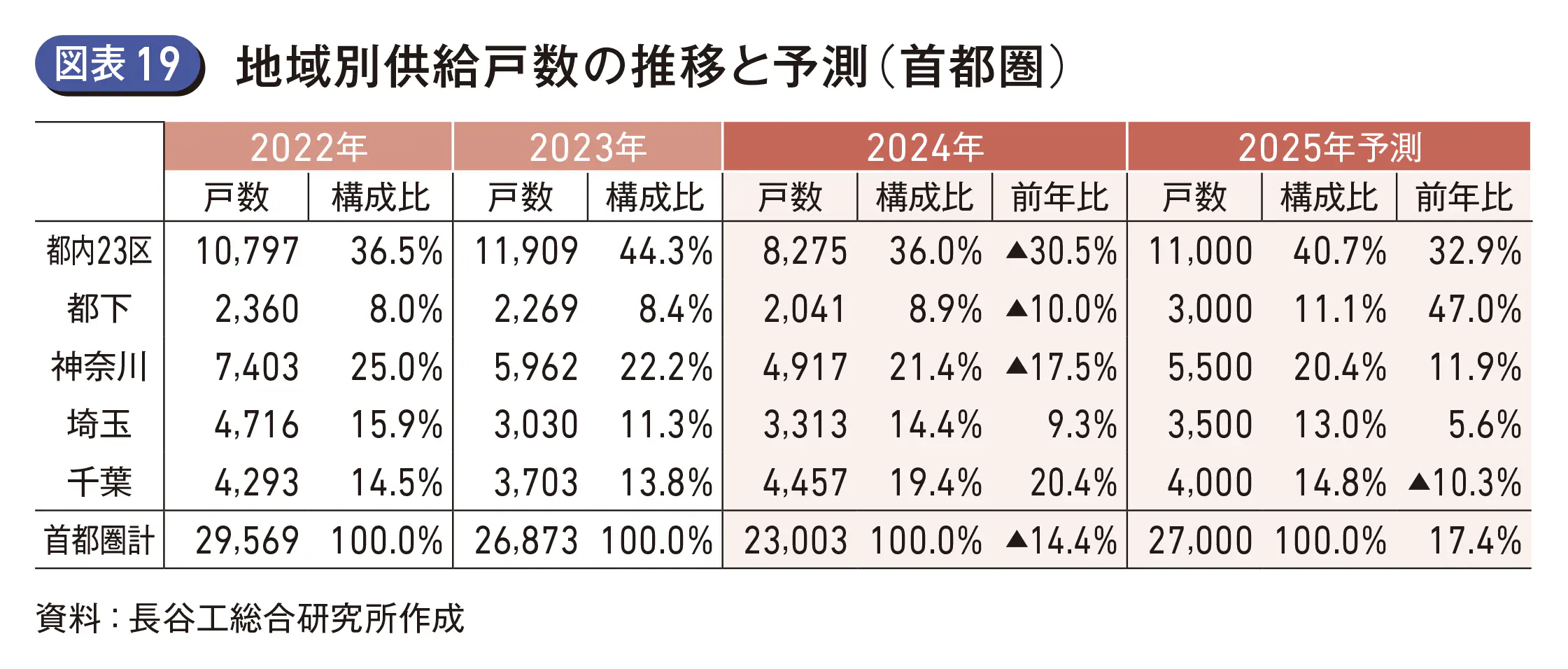 2025年の新規供給戸数については、首都圏では2万7,000戸程度、近畿圏では1万5,500戸程度の供給が行われると判断した。