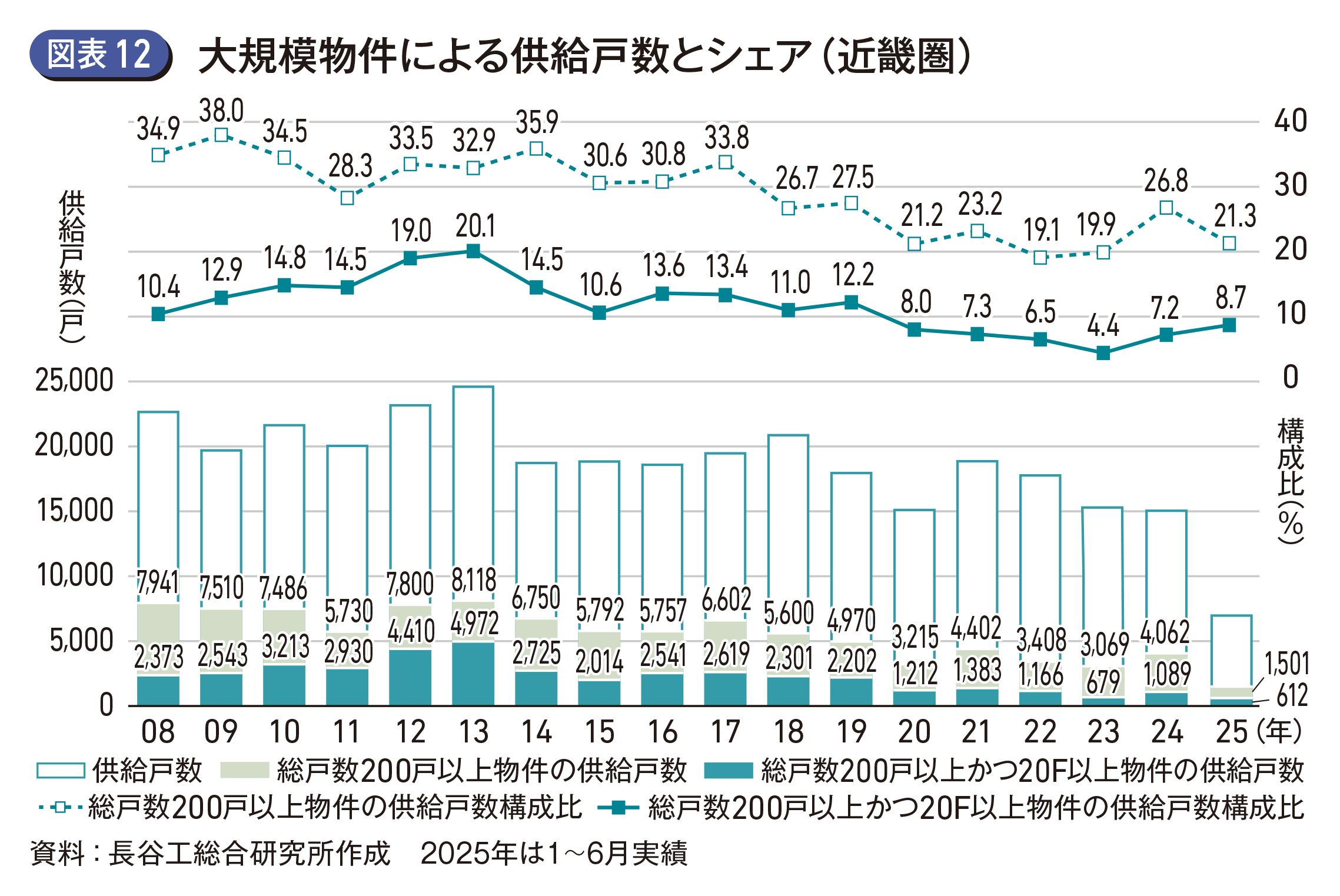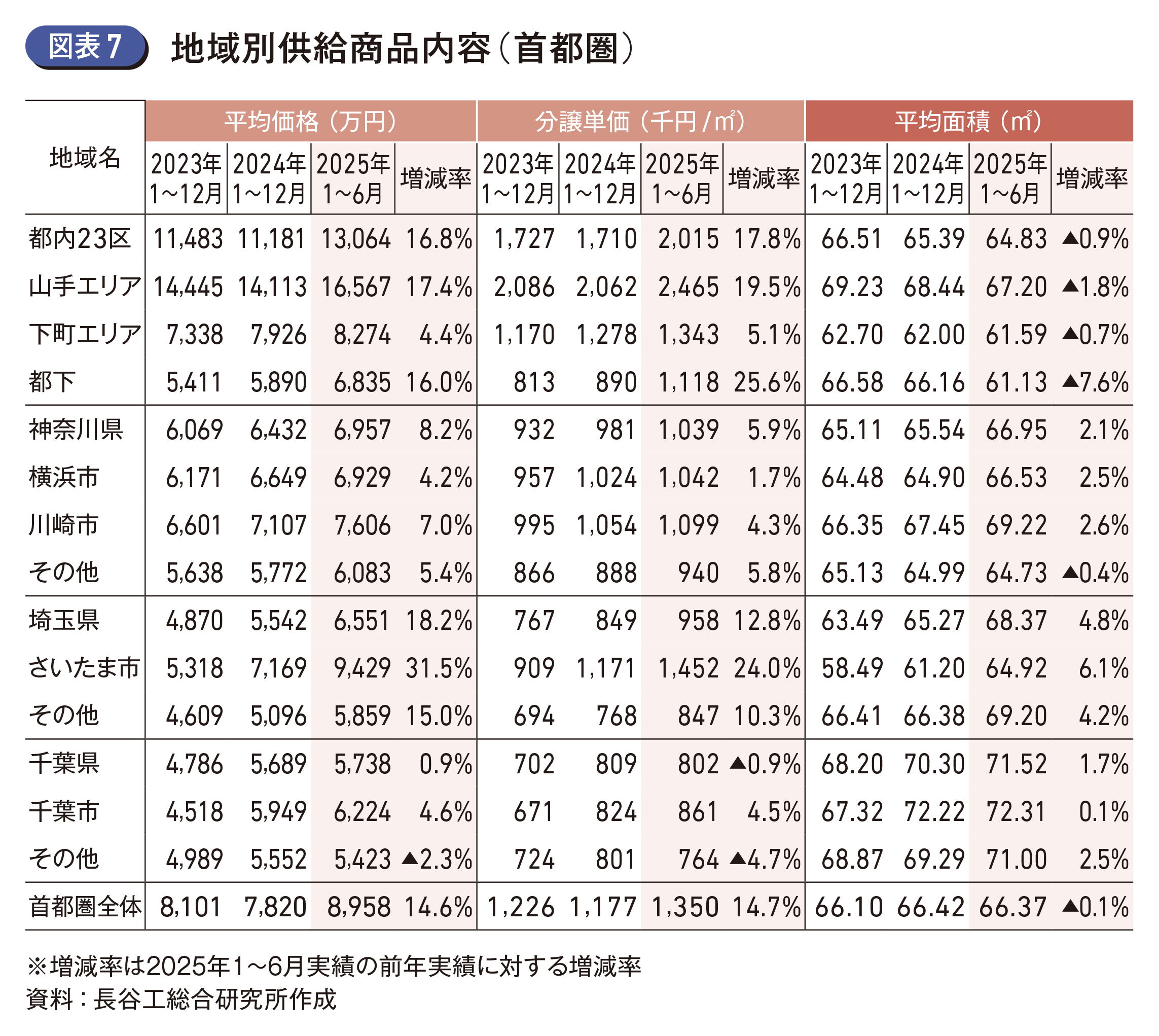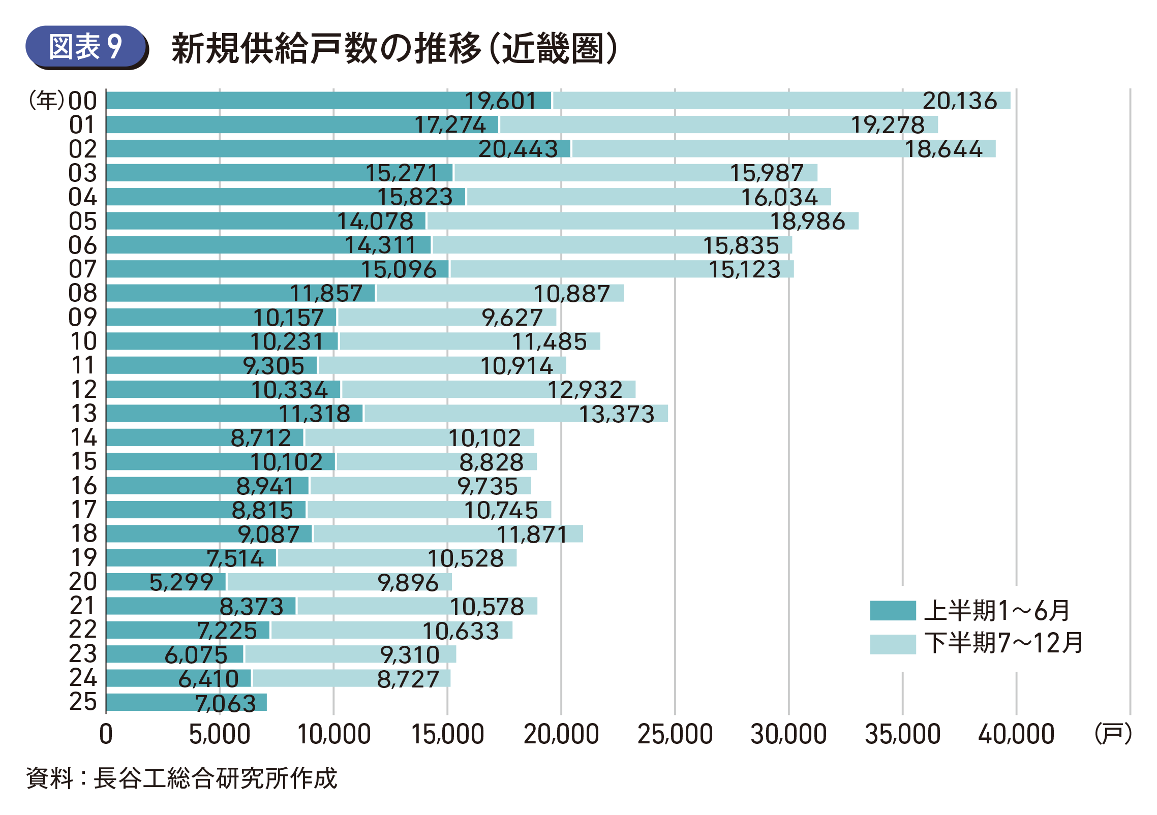 2025年上半期の新規供給戸数は551件7,063戸。前年同期(562件6,410戸)から件数は下回ったものの、新規供給戸数は前年同期比10.2%上回り、2022年以来の7,000戸台を回復した(図表9)。