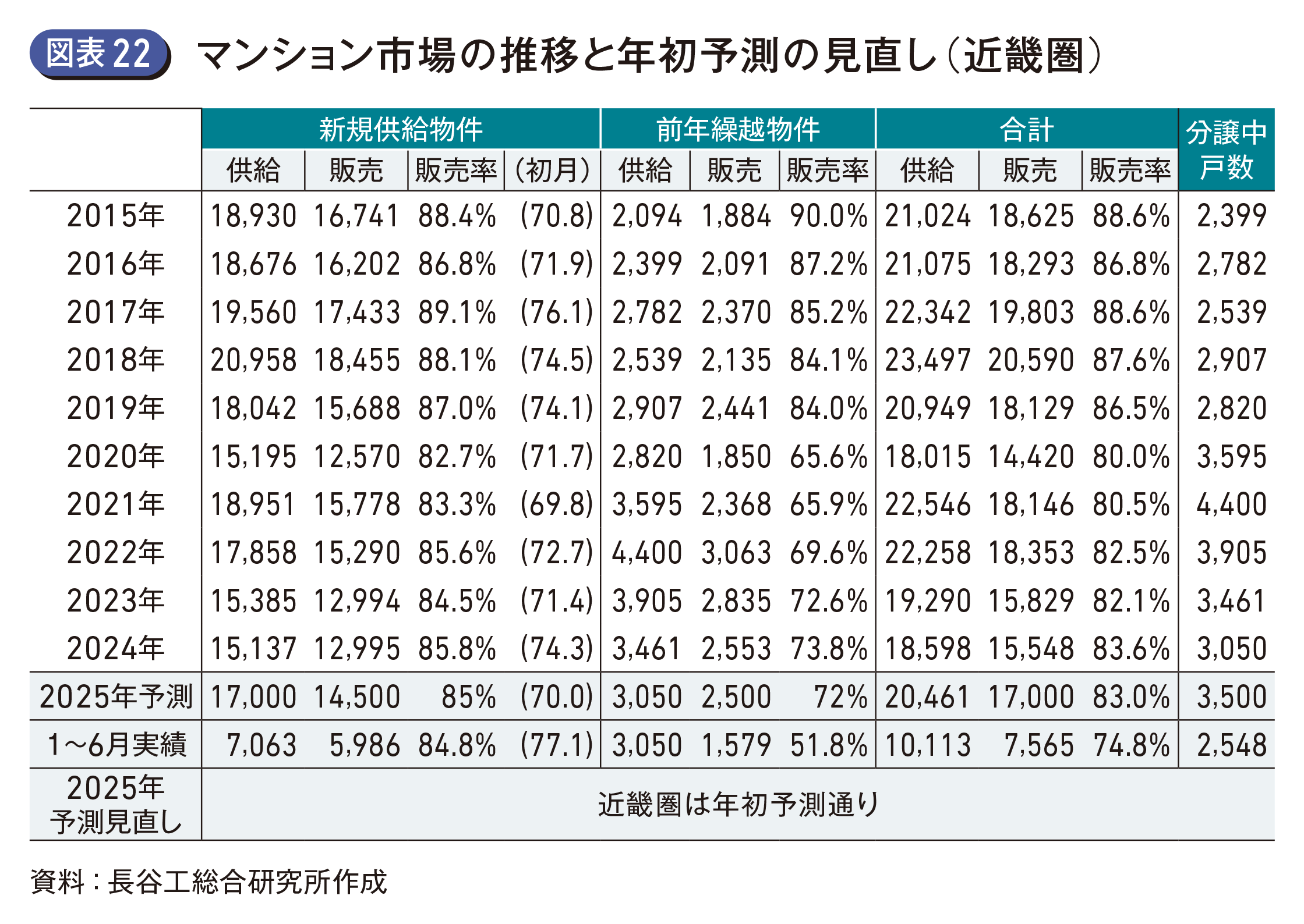 ●下半期の首都圏は2023年、近畿圏は2024年と同程度の供給戸数と見込む