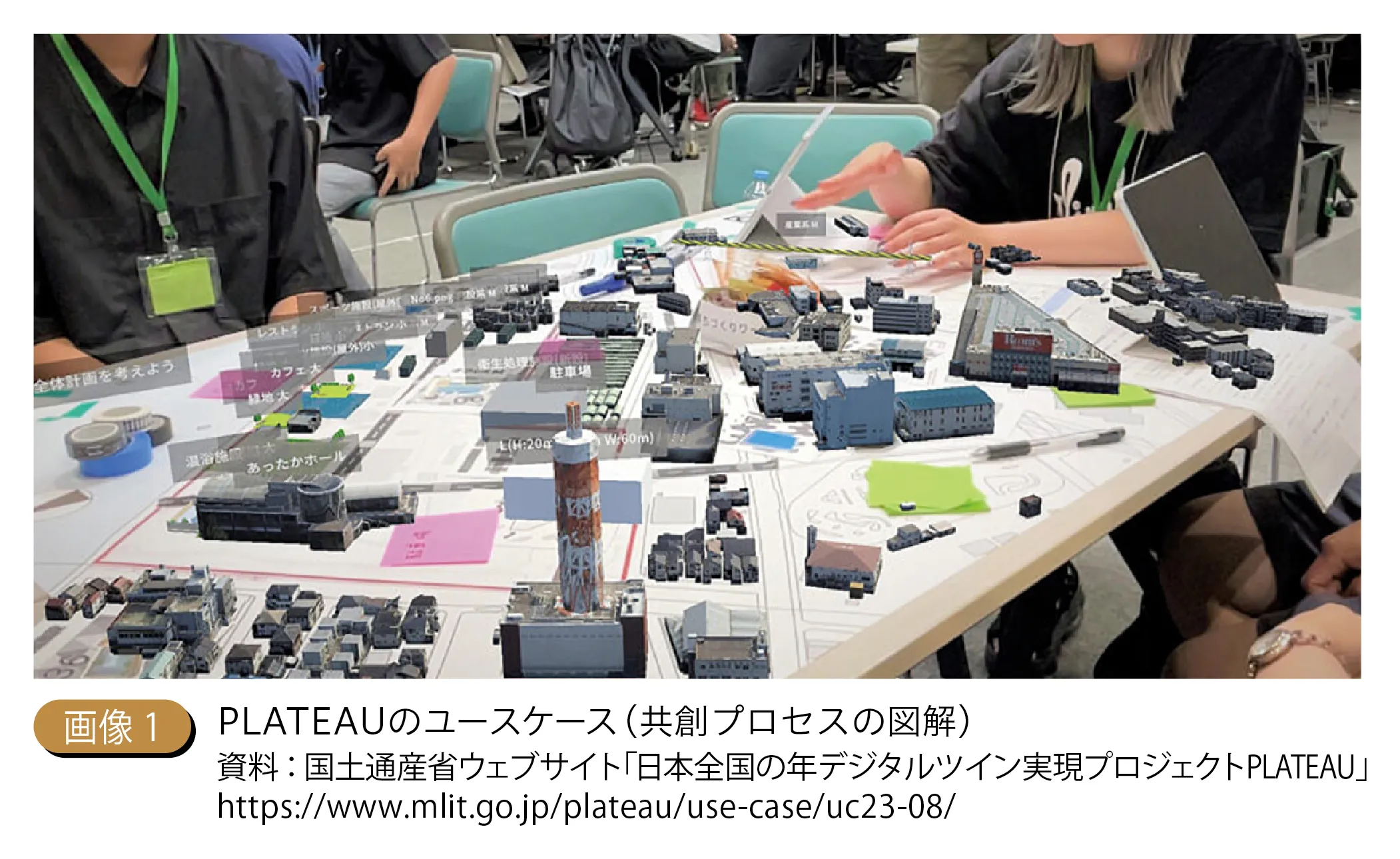 具体的には、不動産業界で大規模マンション開発や街づくりにおいて、計画段階から市民を共創者として巻き込み、PLATEAU等の3D可視化基盤で同じ地図・同じ将来像を共有し、要件定義→プロトタイプ→実証→評価を反復する。これにより、住まい方・共用部プログラム・運用ルールを数値と体験で確かめながら磨き込める。(画像1)