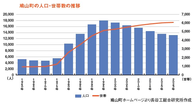 人口が急増。1995年のピーク時には1万8,000人を超えるまで増加したものの、現在は約28%減の1万3,000人ほどに減少。