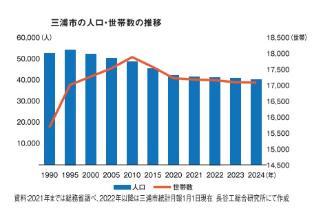 三浦市の人口・世帯数は今も減少が継続しているものの、様々な取り組みにより、2020年以降の減少幅は緩やかとなり、成果が