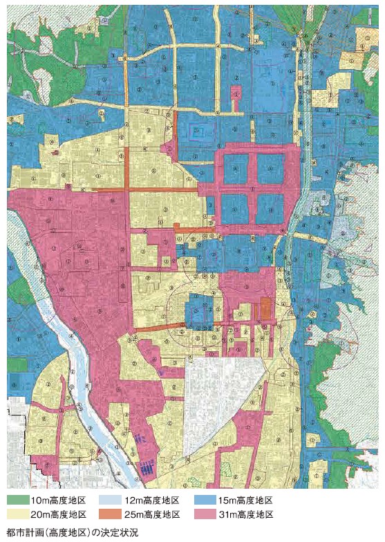 ついては高さ規制を緩和する特例許可制度も設けられたが、特例制度の活用は進まなかった。景観規制を強化したことなどにより、