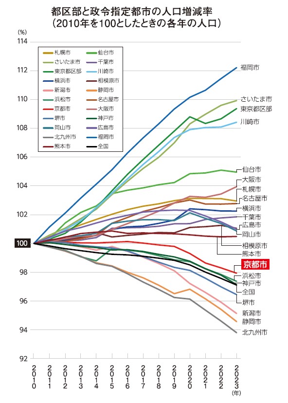顕在化してきた。京都市の人口は2017年以降減少基調となり、新型コロナウイルスの感染が拡大した2020年と2021年には、