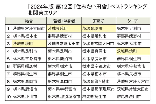 「2024年版 第12回『住みたい田舎』ベストランキング」では、北関東エリアにおいて「若者・単身者」「子育て」世帯で第一位、