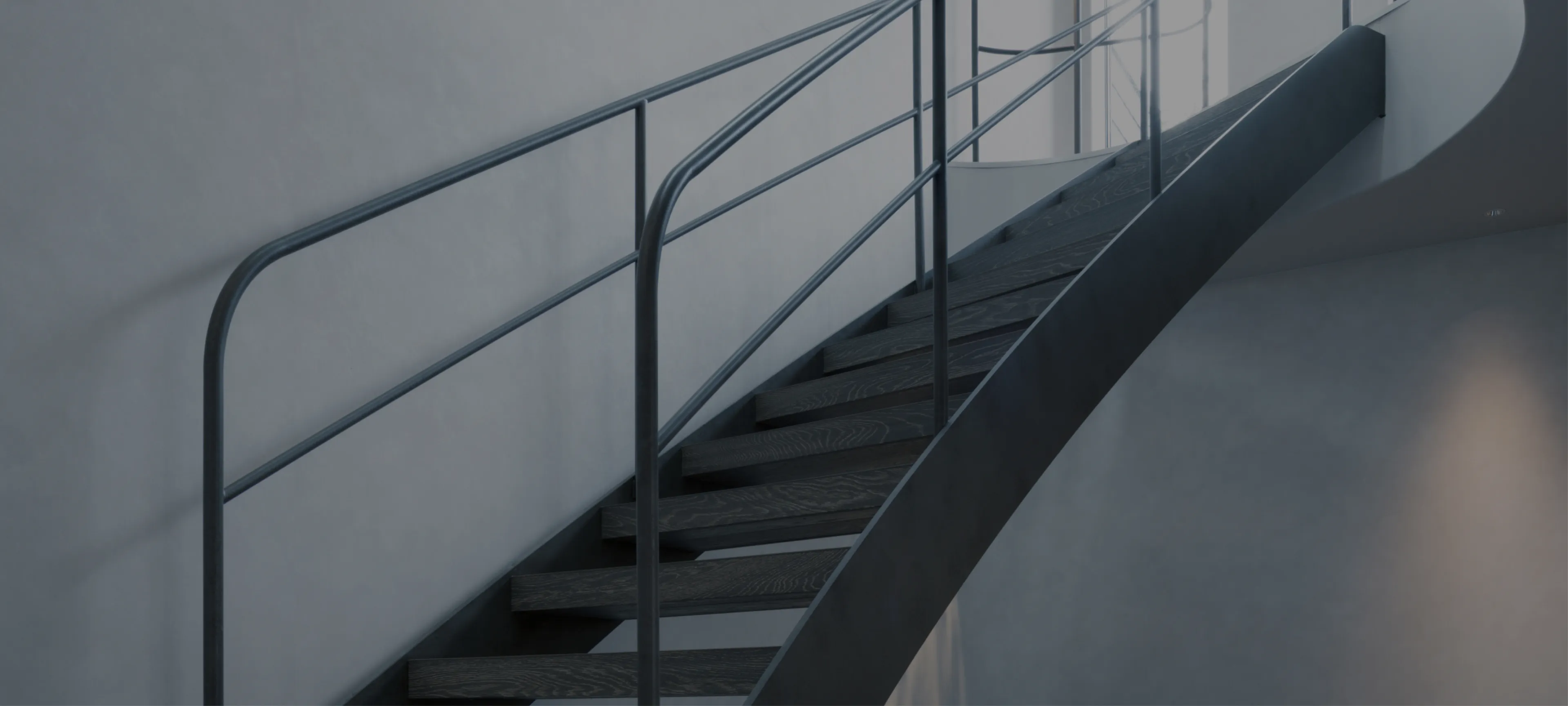 デザインを決定していくプロセスの中で、最も重要視したポイントです。内外装に曲線をふんだんに取り入れていますが、この曲線一つ一つに意味を持っています。例えば階段や手摺は、動線に沿って人を迎え入れるような配置にしていたり、玄関は人が座りたくなるようなくぼみや出っ張りを設けていたりしています。