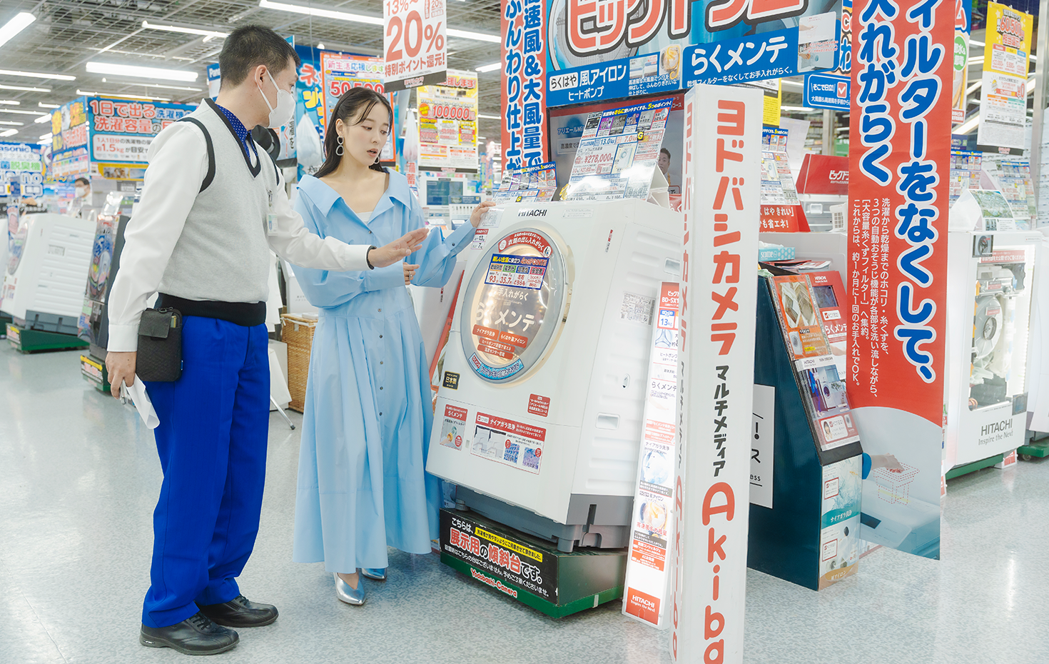 アイドル卒業後に「家電製品アドバイザー」資格を取得し、現在は俳優やタレントの傍ら「家電女優」として活動する奈津子さんが、ヨドバシカメラマルチメディアAkibaに突撃! カリスマ店員の勝田泰幸さんに、マンション暮らしを快適にする家電について聞きました。