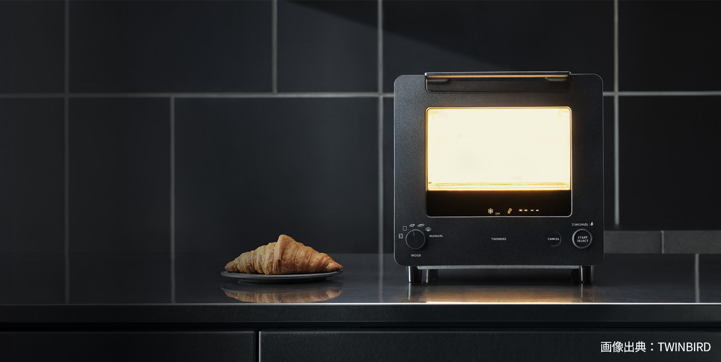 勝田:最近人気のTWINBIRD(ツインバード)「匠(たくみ)ブランジェトースター」は前から見ると正方形でコンパクトなのですが、しっかり奥行きがあって、食パン2枚を前後に入れることができます。自動調節でリベイクしてくれるので、焦げ付かないようこまめに焼き加減を確認する必要がなく、忙しい朝食準備にも活躍します。
