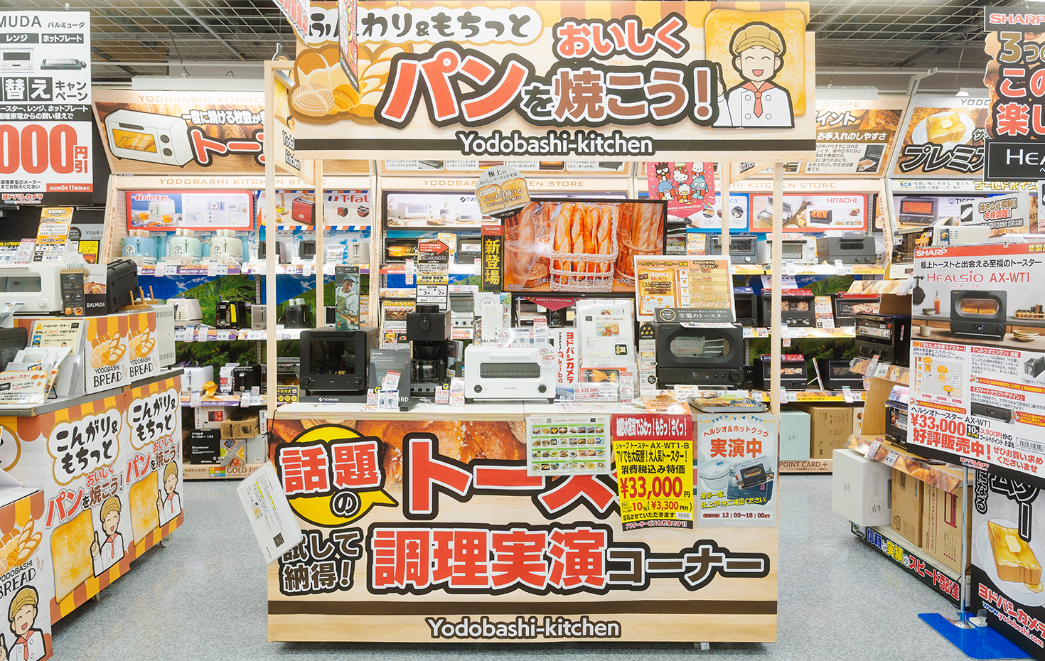 ▲売り場に多機能トースターの調理実演コーナーを設けるほど注目度が高い