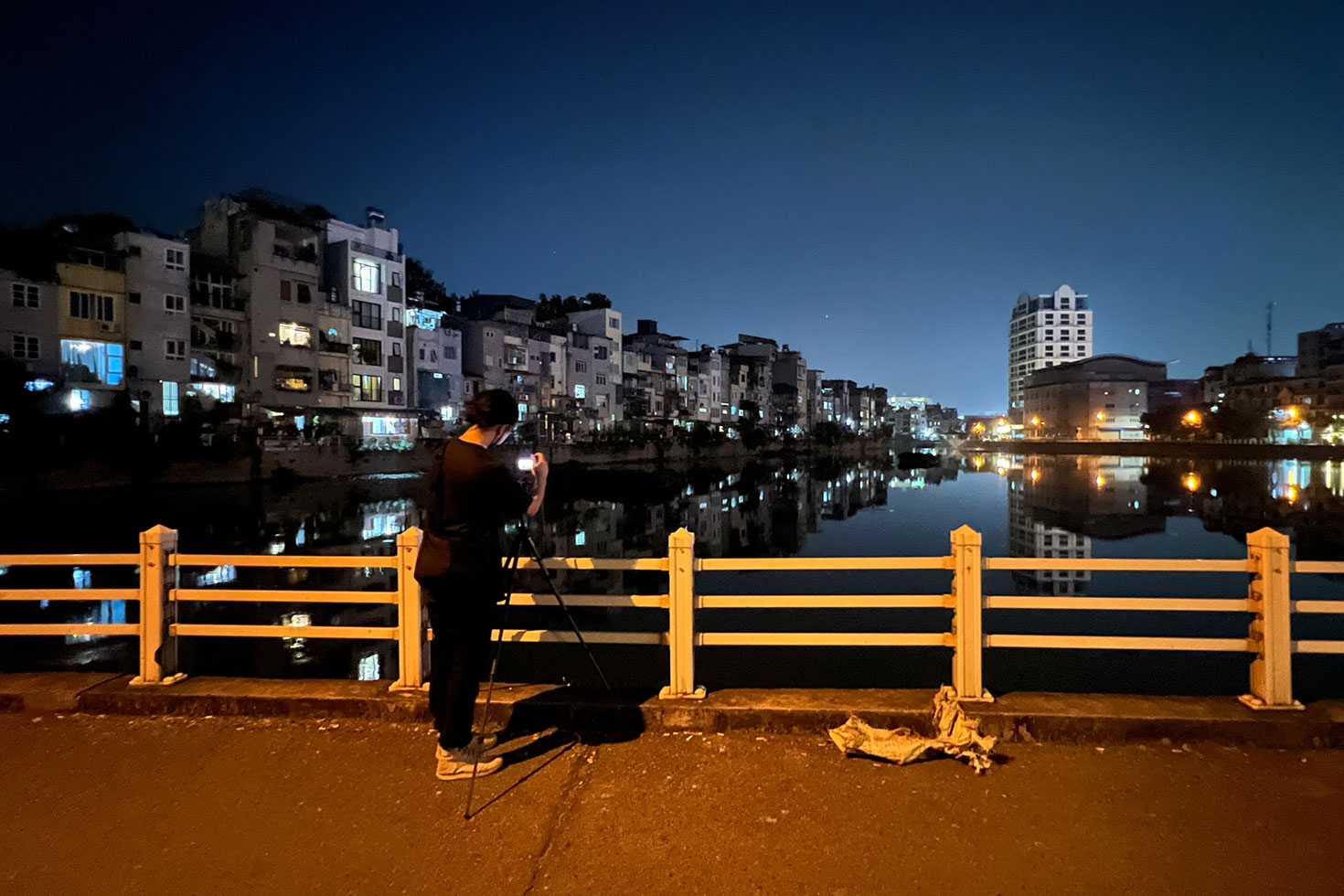 ▲素早く構図を決めて長時間露光を行う佐藤さん