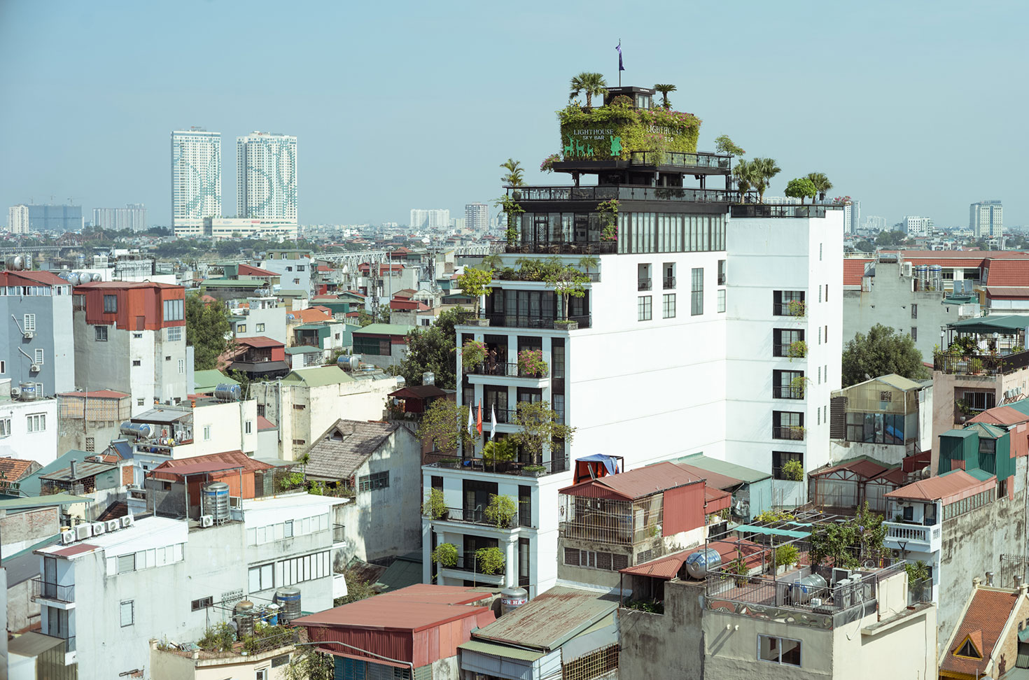 「この建物はいわゆる伝統的なチューブハウスではなく、ネオチューブハウスと呼ばれるものです。1980年代以降、ベトナムの経済成長による人口増加に対応するため、郊外の土地を分割して売り、間口(建物の幅)が狭く奥行きが深い土地形状に、この建物のような3〜6階建ての細長い高層住宅が一気に広がりました」
