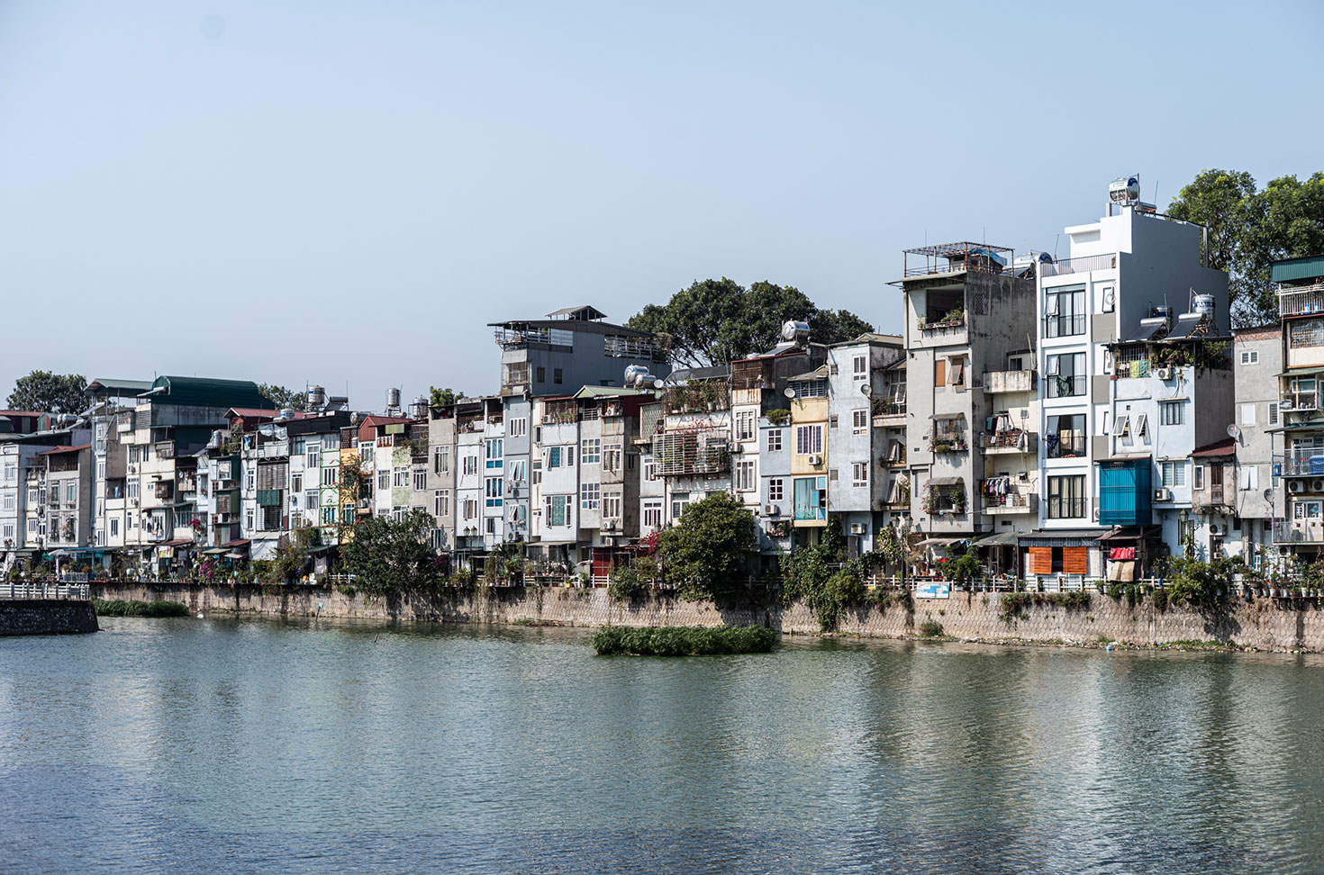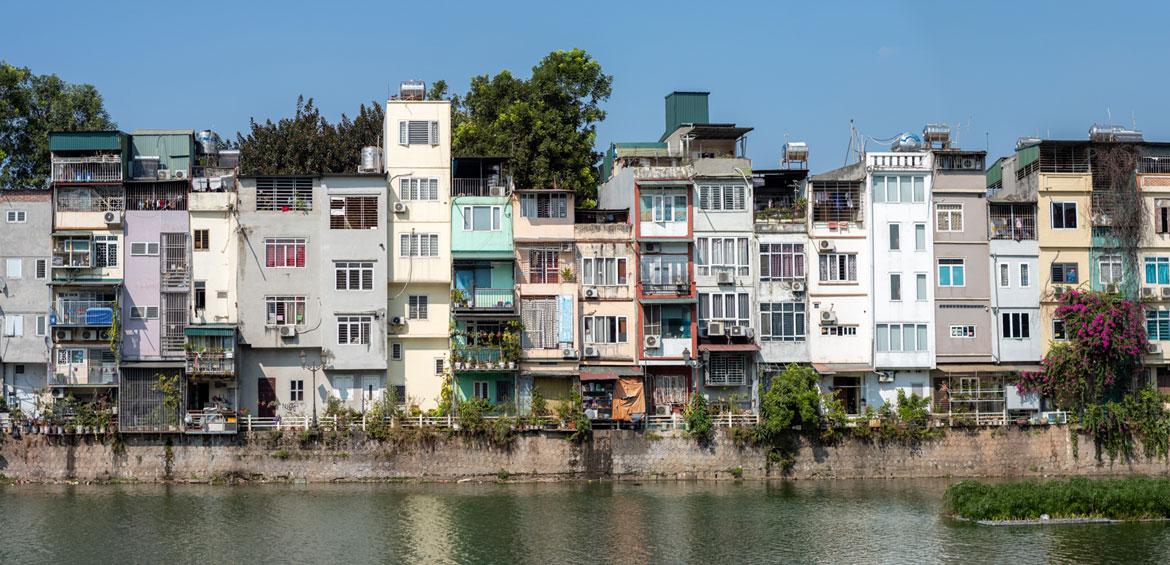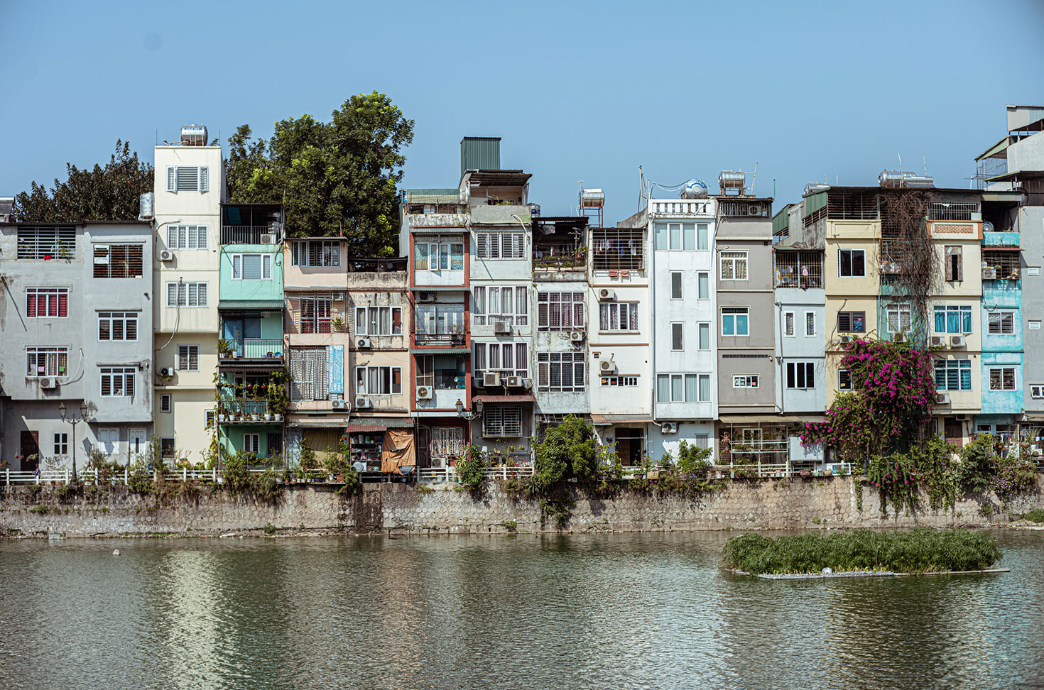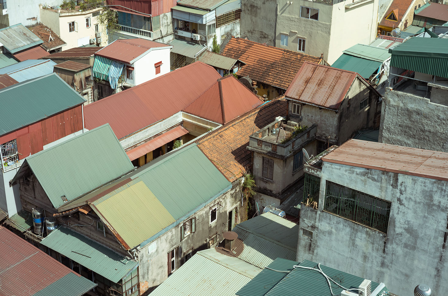 ▲隙間なく並ぶベトナム・ハノイのチューブハウス