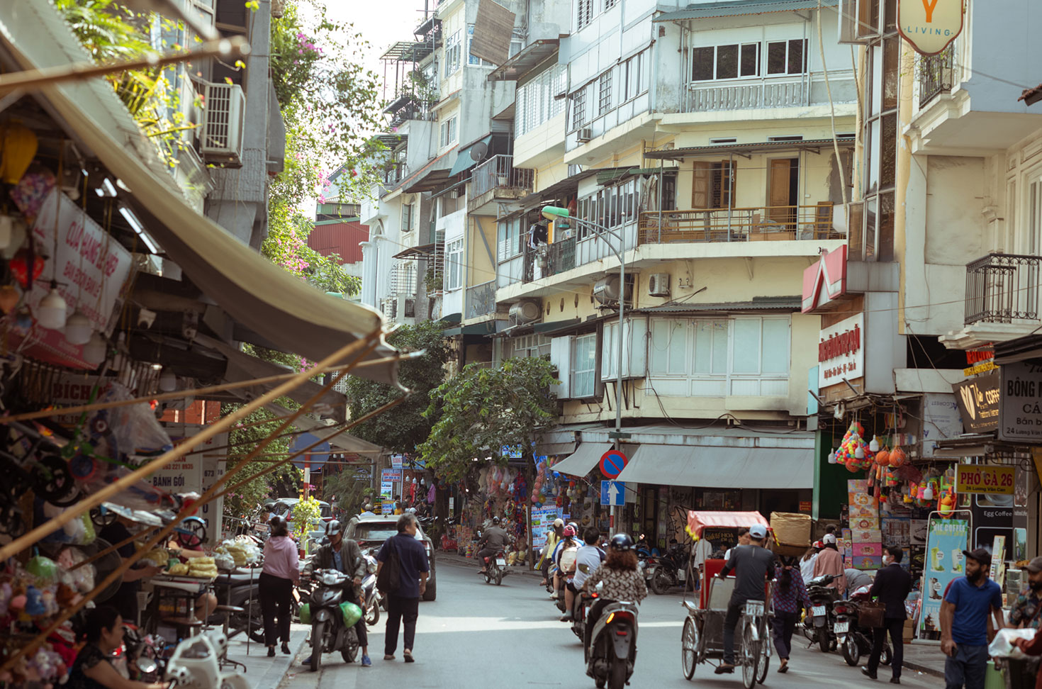ハノイ旧市街は、大小さまざまな路地が入り交じり、通りに面したカフェの軒先には低く小さなチェアが並ぶ。欧米人観光客たちは窮屈そうに肩を寄せあいながら小さなチェアに座り、濃くて甘いベトナムコーヒーをすすっている。