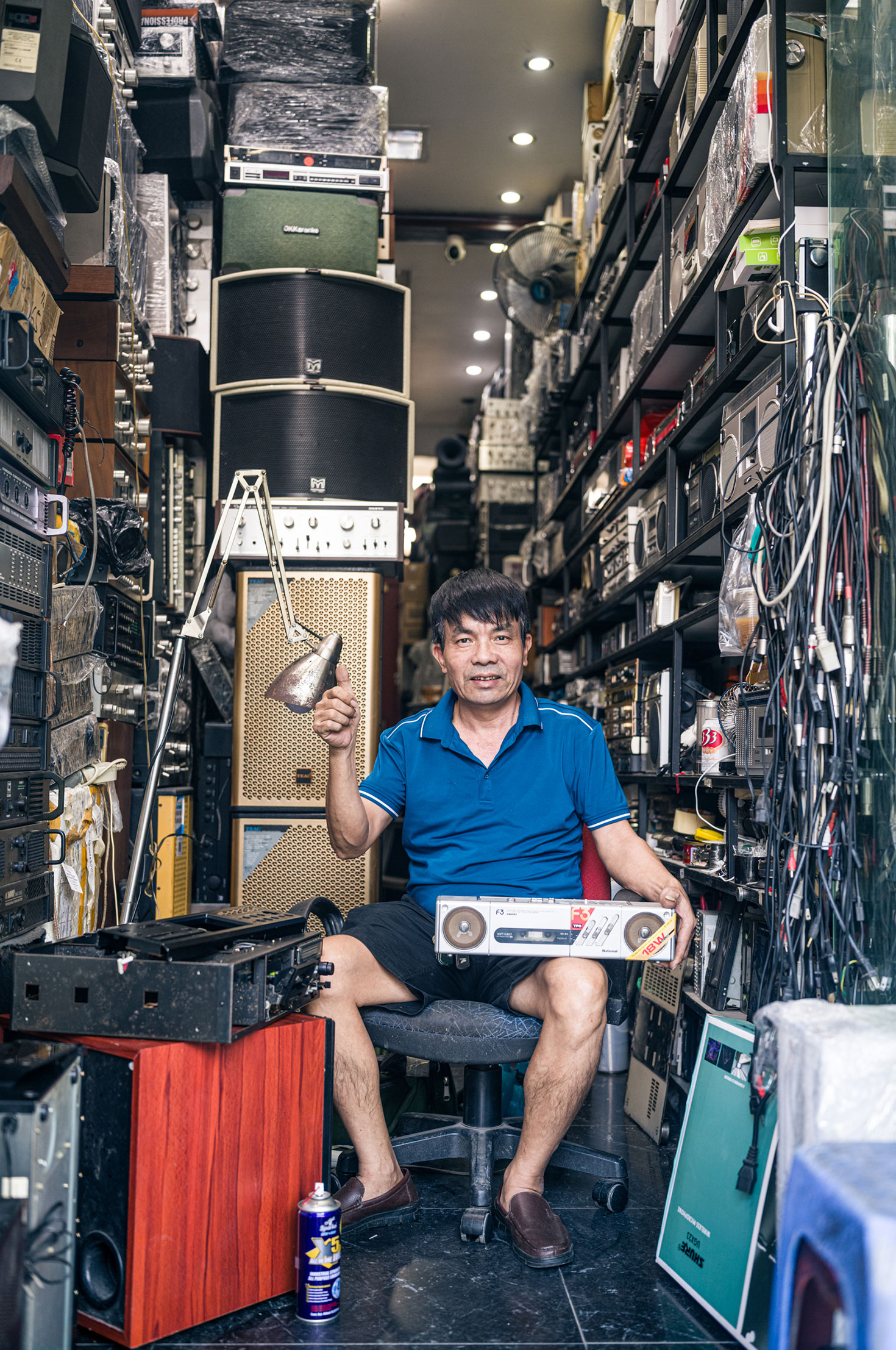 この店のオーナー、ハノイ随一のラジカセ修理技術者として活動するトゥアンさんに話を聞いた。ベトナム全土ではヴィンテージラジカセ愛好家が2万人おり、Facebookグループなどで頻繁に情報交換され、オフ会なども定期的に開かれているとのことだ。愛好家コミュニティの会長(屈指のコレクター)は日本からもラジカセを送ってもらうこともあるらしい。