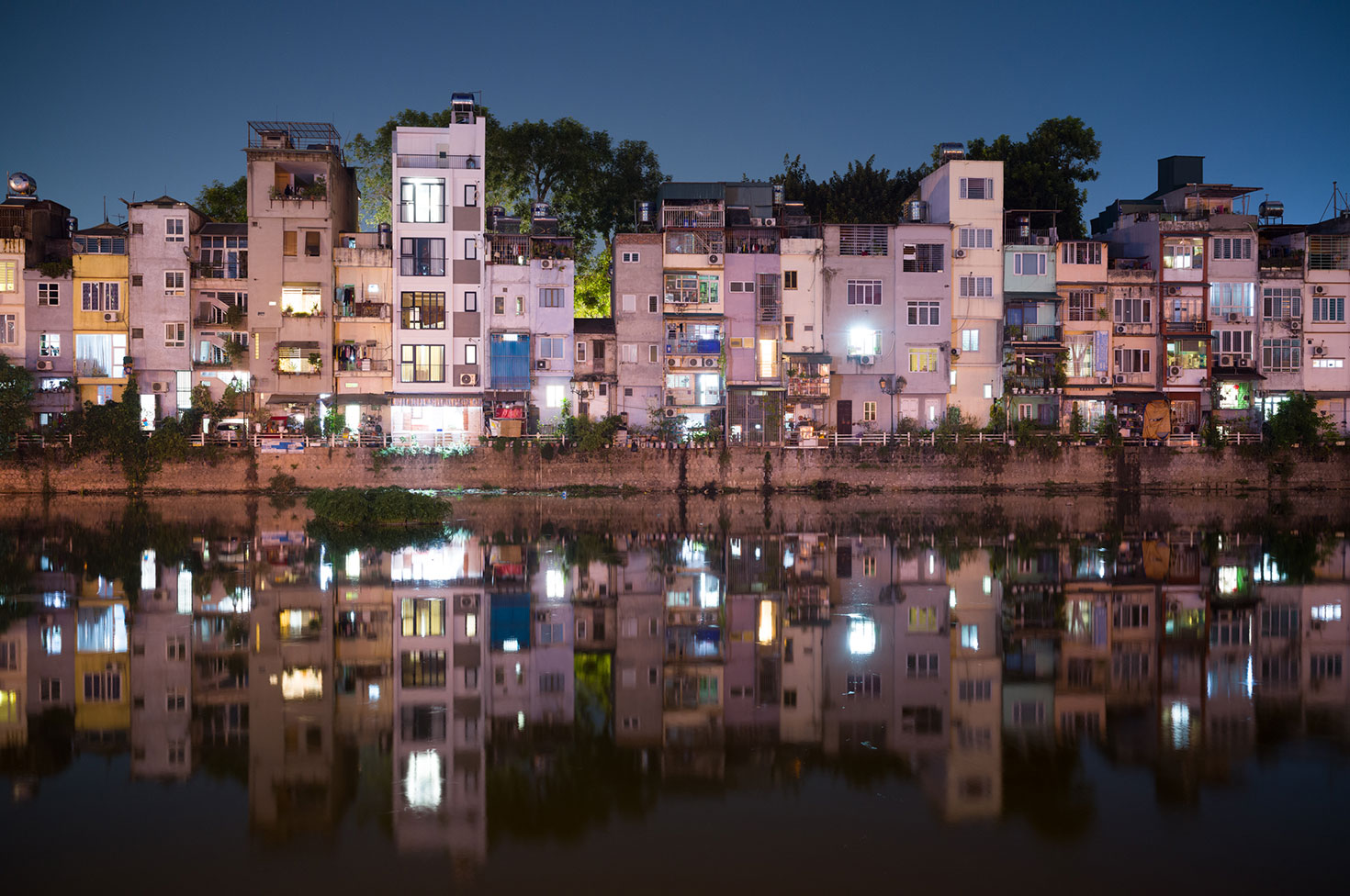 「ハノイは過去にも何度か来ていて、前からなんでこんなぎっしり詰まってるんだろうと不思議でしたが、今回の取材でやっと理由がわかりました。カンボジアの水上集落では、自然と政治が住居の形を決めていた。ここではまた政治がその形を決めているけですけど、単に制度の結果ではなくて、ベトナムが辿ってきた複雑な歴史がそのまま家々の姿に影響していることが面白いですね。あと京都の町屋とも似ていますね。町屋も間口が狭くて奥に深いので、よくうなぎの寝床とかいわれますけど。町屋も戦国時代の間口による課税制度でこういう構造になったという話を聞いたことがありますが、現在では諸説あるそうです。」
