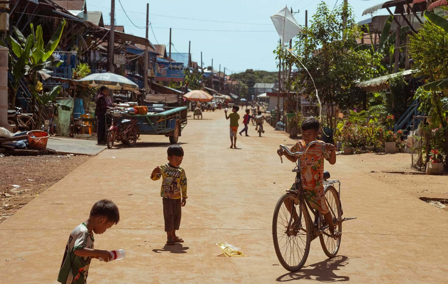 住居の軒先には観葉植物の鉢植えが並び、路上では子どもたちが遊んでいる。商店や可動式リヤカーなどでの露店も営業していて、一見すると東南アジアのどこにでもある郊外の景色に見える。