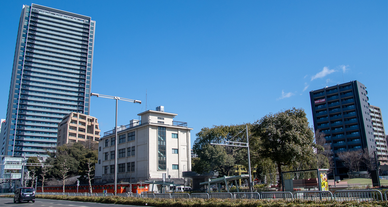 ▲金公園(こがねこうえん)周辺ではマンション建設が進む。左側の高層建築が柳ヶ瀬グラッスル35。