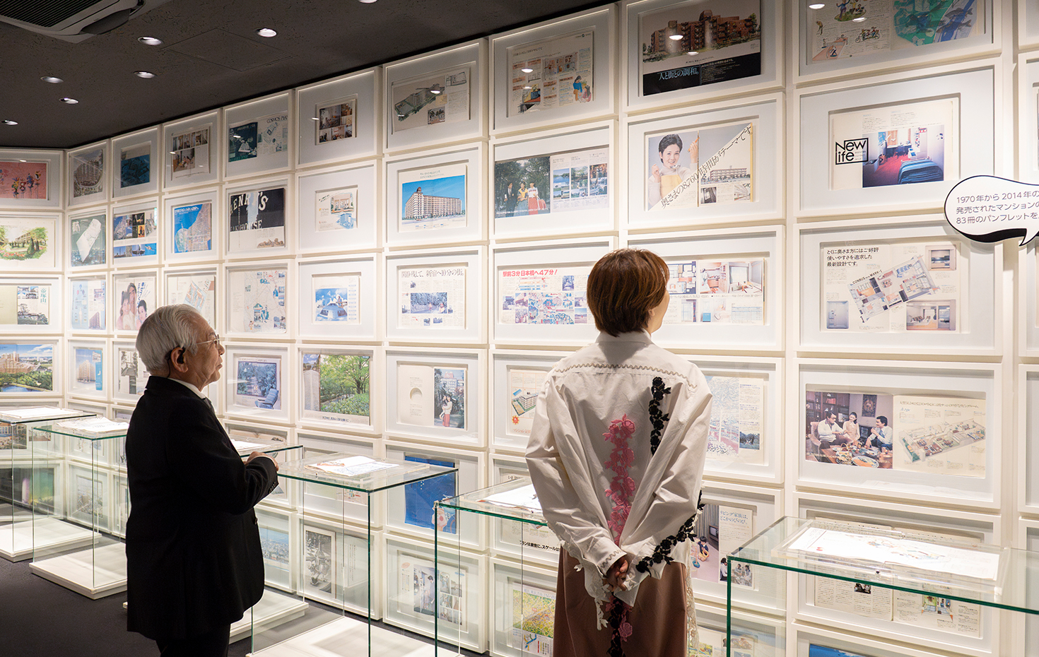 ▲1970~2014年に発売されたマンションのうち、83冊のパンフレットを展示