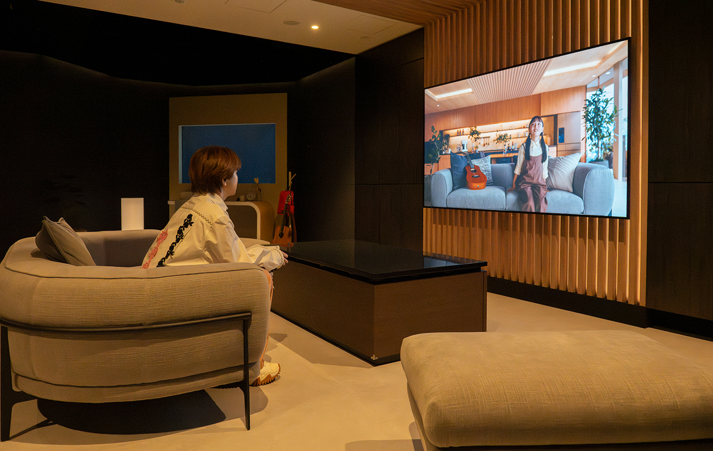 ▲中にはリビング、子ども部屋、洗面所がある。映像は、AIコンシェルジュのアヴィが家族の一員のように暮らす物語