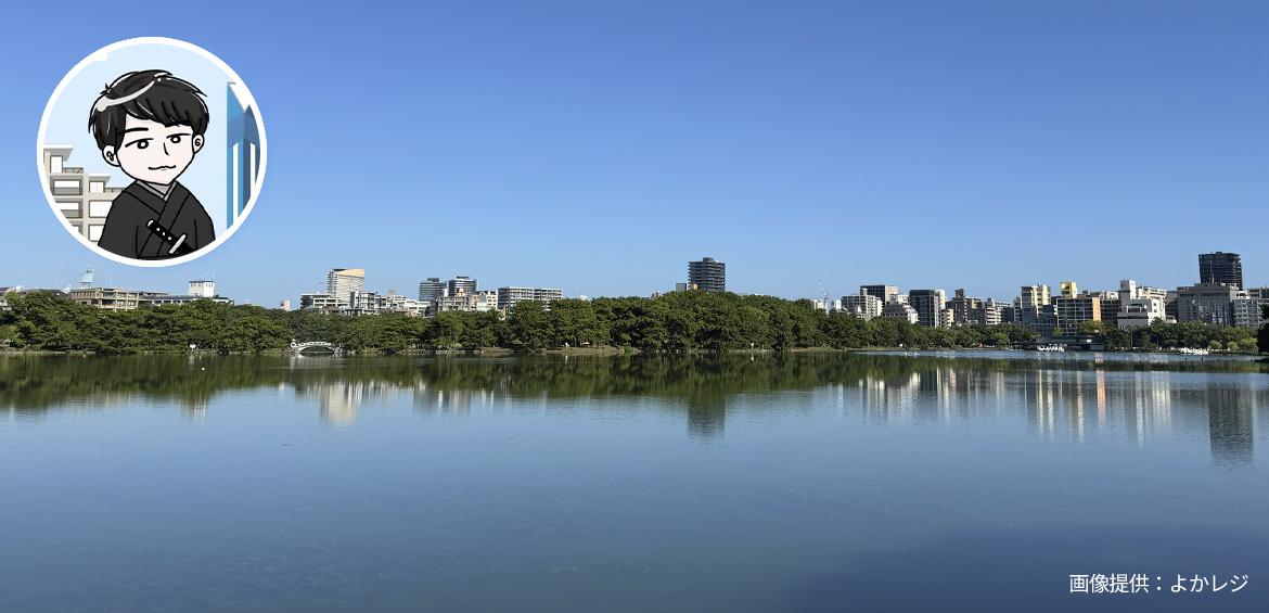 よかレジ:あとは、大濠公園の周辺ですね。大濠公園は私が個人で行なっているマンション購入相談でも、常に希望エリア、憧れのエリアとして名前が挙がりますし、じつは私が福岡に移住したきっかけのひとつでもあります。とにかく広くて、「陽」のオーラにあふれた雰囲気も素晴らしくて、「この公園を日常にしたい」と思ったんです。公園の周囲にはハイグレードなマンションが多く、大濠公園の名前がついている「グランドメゾン」シリーズだけでも約30棟が立っています。