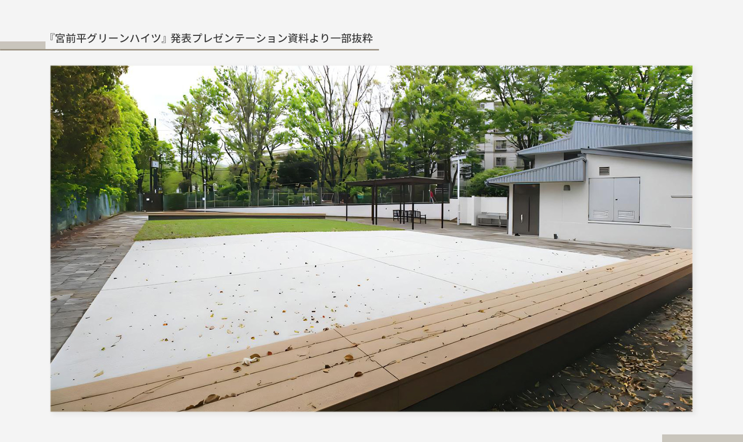 マンションライフ部門では、築50年を超えた大規模団地『宮前平グリーンハイツ』(神奈川県川崎市)の共用部リノベーション事例が部門賞に選ばれました。2013年に老朽化が原因で閉鎖されたプールの跡地を、管理組合と大成有楽不動産の川村章司さんが協力して、約7年をかけてプール跡地を『グリーンひろば』へとリニューアルした取り組みが高く評価されました。