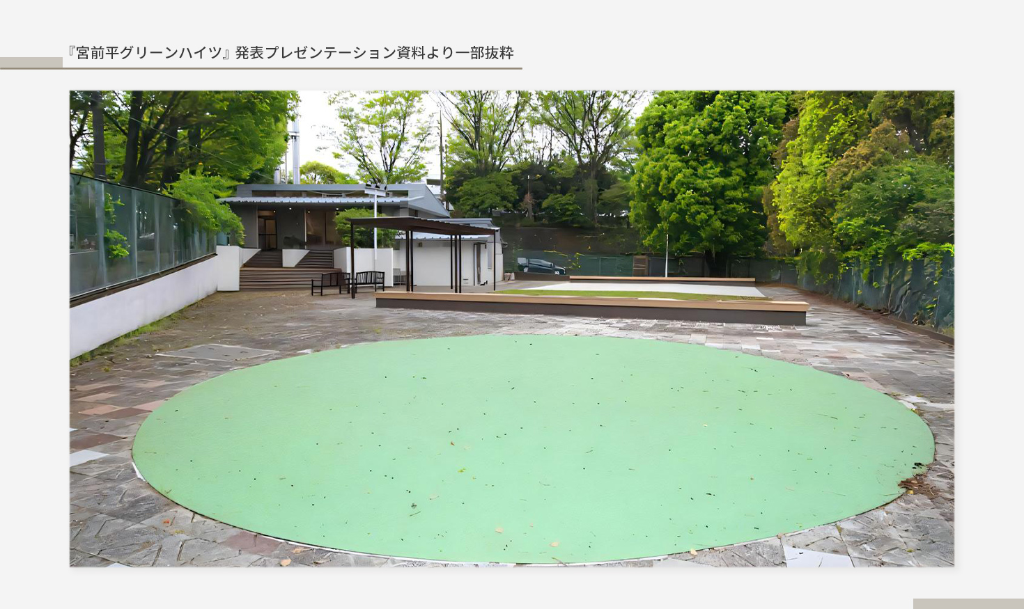 川村さんは「プールはマンションのシンボル的存在でしたが、利用者の減少と設備の老朽化で閉鎖せざるを得ませんでした。跡地の活用には7年の歳月をかけ、住民の意識調査や勉強会を重ねて、共用部のあり方を模索しました。跡地には多目的広場『グリーンひろば』と集会室『アトッチ』を設けることで、高齢者と子どもの交流を促進し、コミュニティの活性化を図ることができています。プールの形状を残した意匠も好評です。この取り組みは100年続くマンションに向けたグランドデザインの一環。今後も施設の利活用方法を検討し、魅力的な街づくりを目指します」と語っています