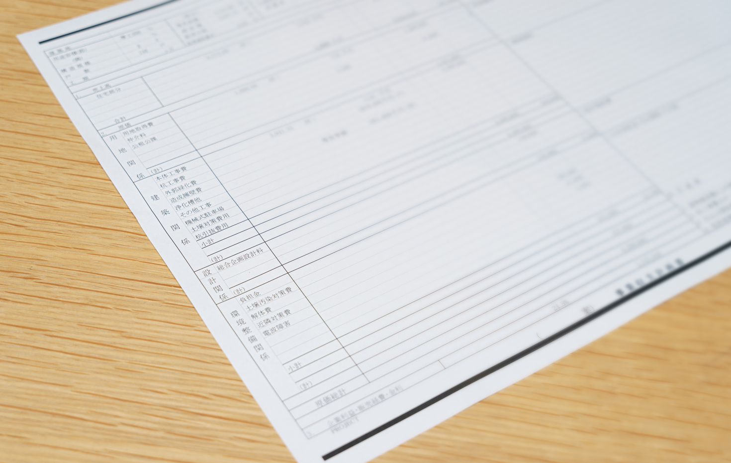 ▲マンションにかかるコストが記載された「事業収支計画書」(※写真は架空のもの)
