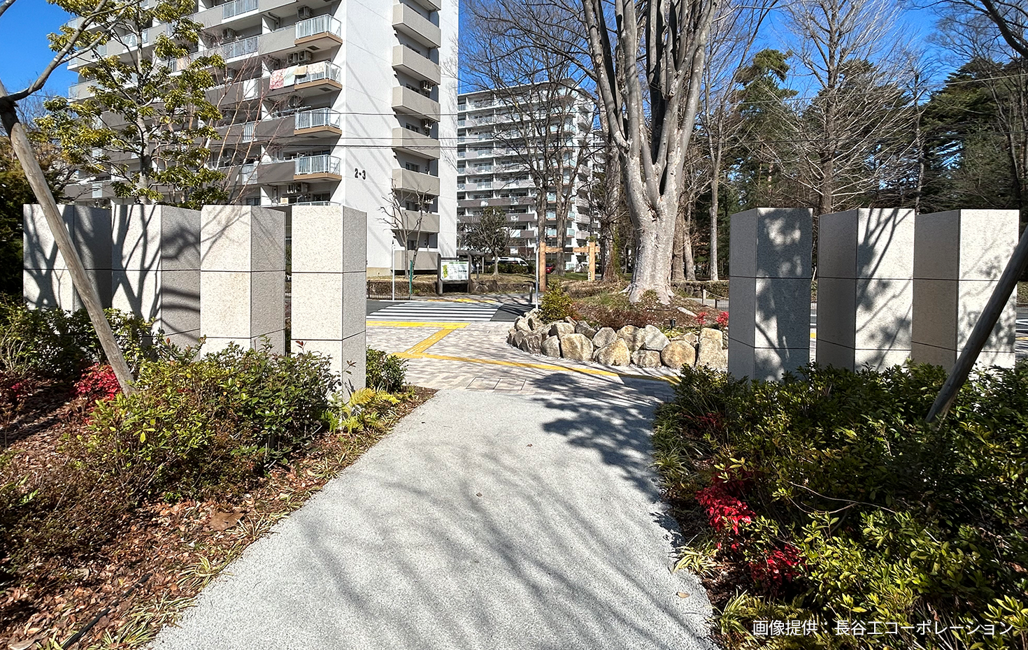 ▲近くの公園とマンションをつなげる遊歩道を作った