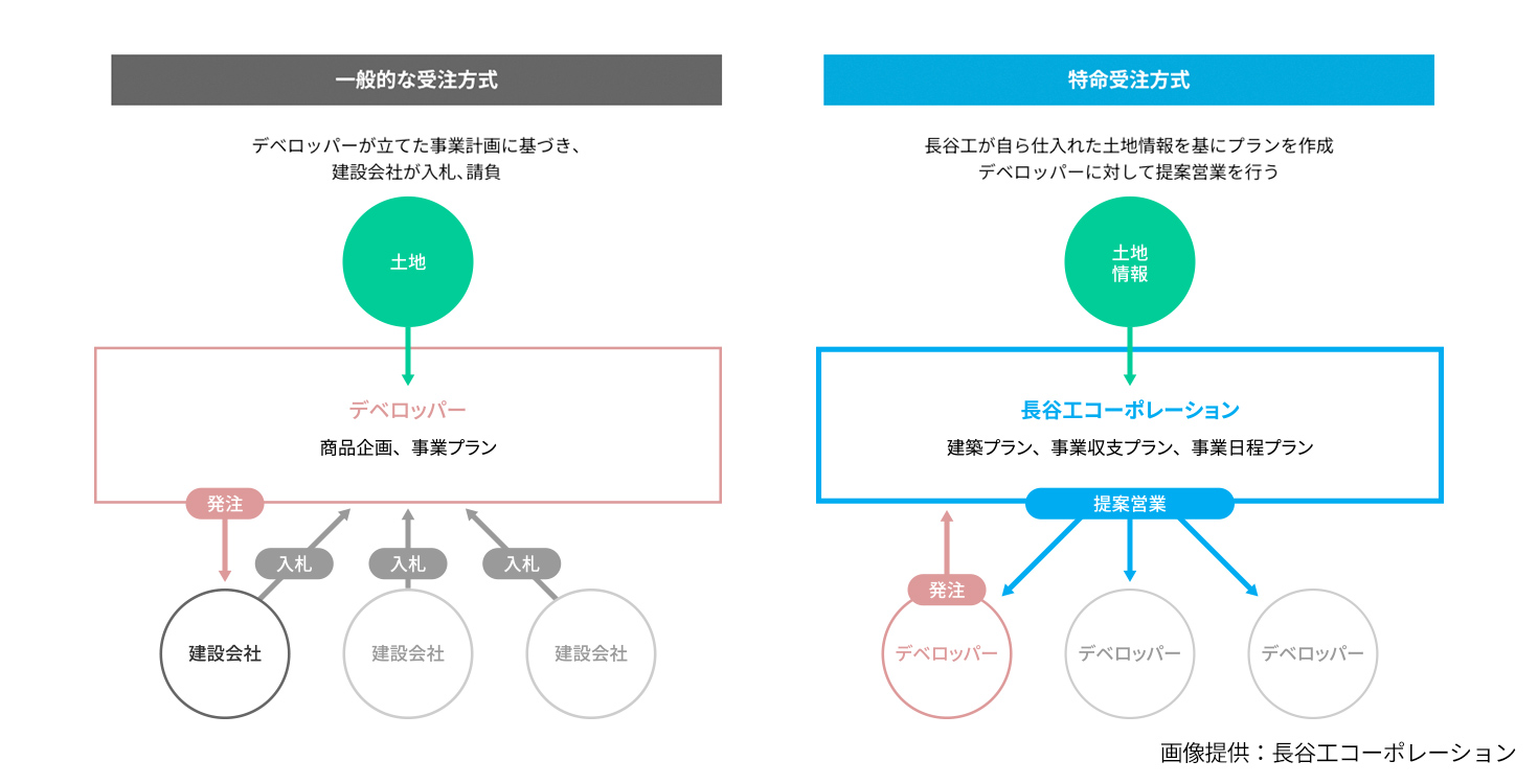 佐藤:確かにそういったイメージもあるかもしれないです(笑)。ゼネコンは建設を請け負い、企画や開発から関わるのがデベロッパーになるのですが、長谷工はどちらの顔も持ち合わせているんですよ。土地が減り、競合が増え、地価も建築費も高騰している今のマーケットでは特に、見積もりを出すスピードや提案力も用地取得の可否を左右します。長谷工のこうした体制やこれまでの経験、実績、技術があるからこそ、取得できる用地も少なくありません。「土地は生き物だ」と、上司に口を酸っぱくして言われてきました。