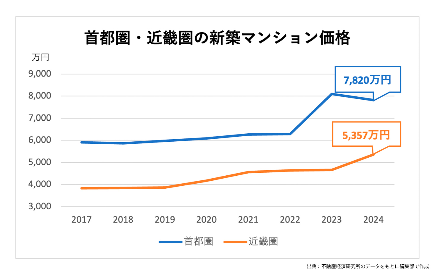 ――不動産経済研究所のレポートによれば、2024年の新築マンション平均価格は、首都圏が前年比3.5%減の7,820万円、近畿圏は同14.8%増の5,357万円。首都圏はやや下落したものの、なぜここまで高騰しているのでしょうか?