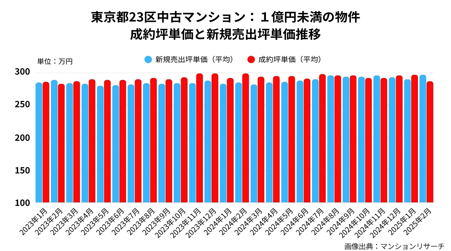 ▲1億円未満の物件の成約価格はここ数年変動は少ない