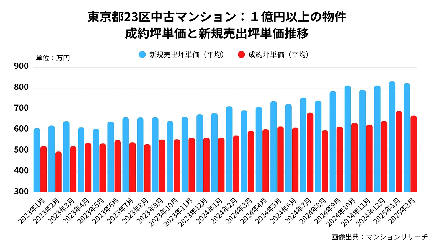 ▲一方、1億円以上の物件の価格は依然として上昇基調にある