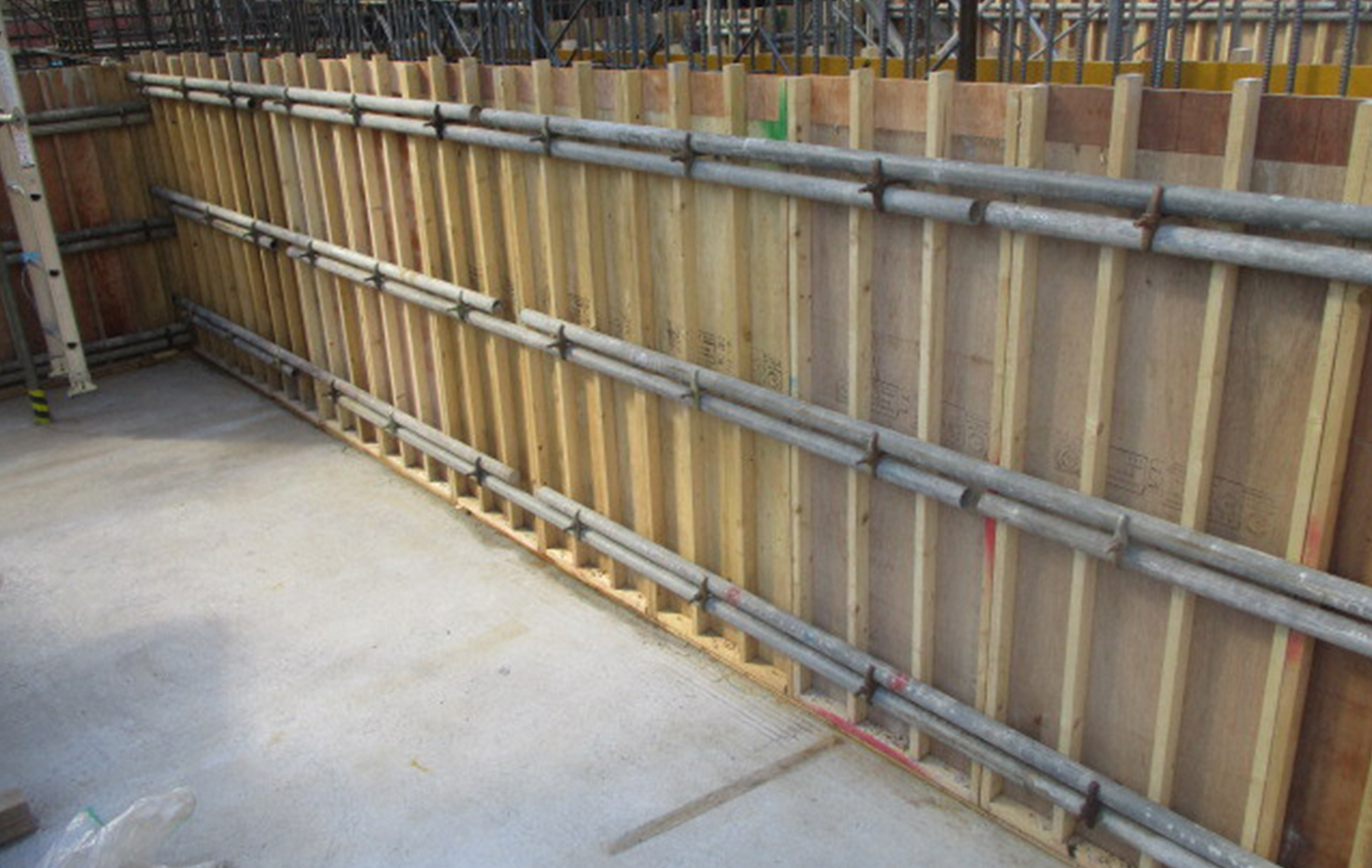 ▲この木材の型枠材にコンクリートを流し込んで固めて床や壁をつくります
