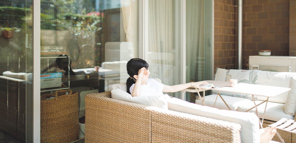 「ストーブもあるから、ちょっとくらい寒くても平気なんです。友だちとテラスでわいわい過ごすのも好きだけど、ひとりでソファに座って本を読む時間もすごく好きで。たまに猫もテラスに出てきて、一緒にソファでぼーっとしています」