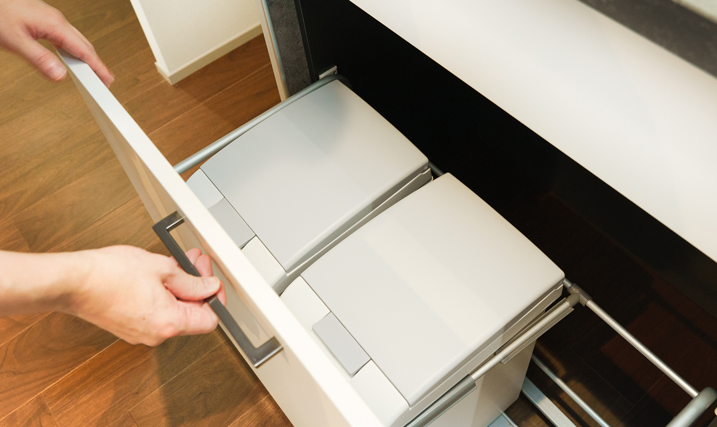 ▲人の目に触れさせたくないゴミ箱をキャビネット内に収納できるのが嬉しい