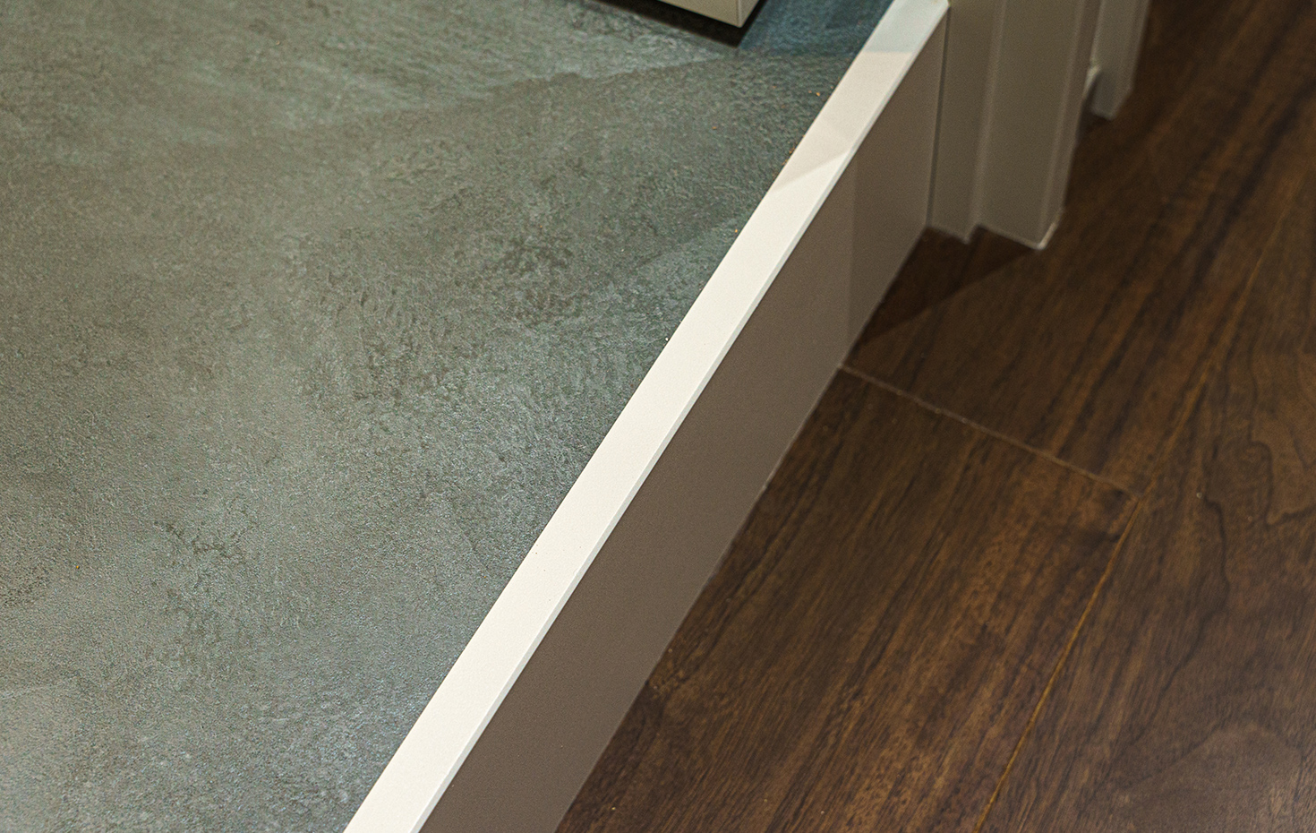 ▲天板とキッチンパネルを同系色で揃えて、落ち着いた雰囲気にまとめたキッチン。食洗機は念願のフロントオープンを導入。複数名の来客があっても一度の運転で食器洗いができるのが快適である