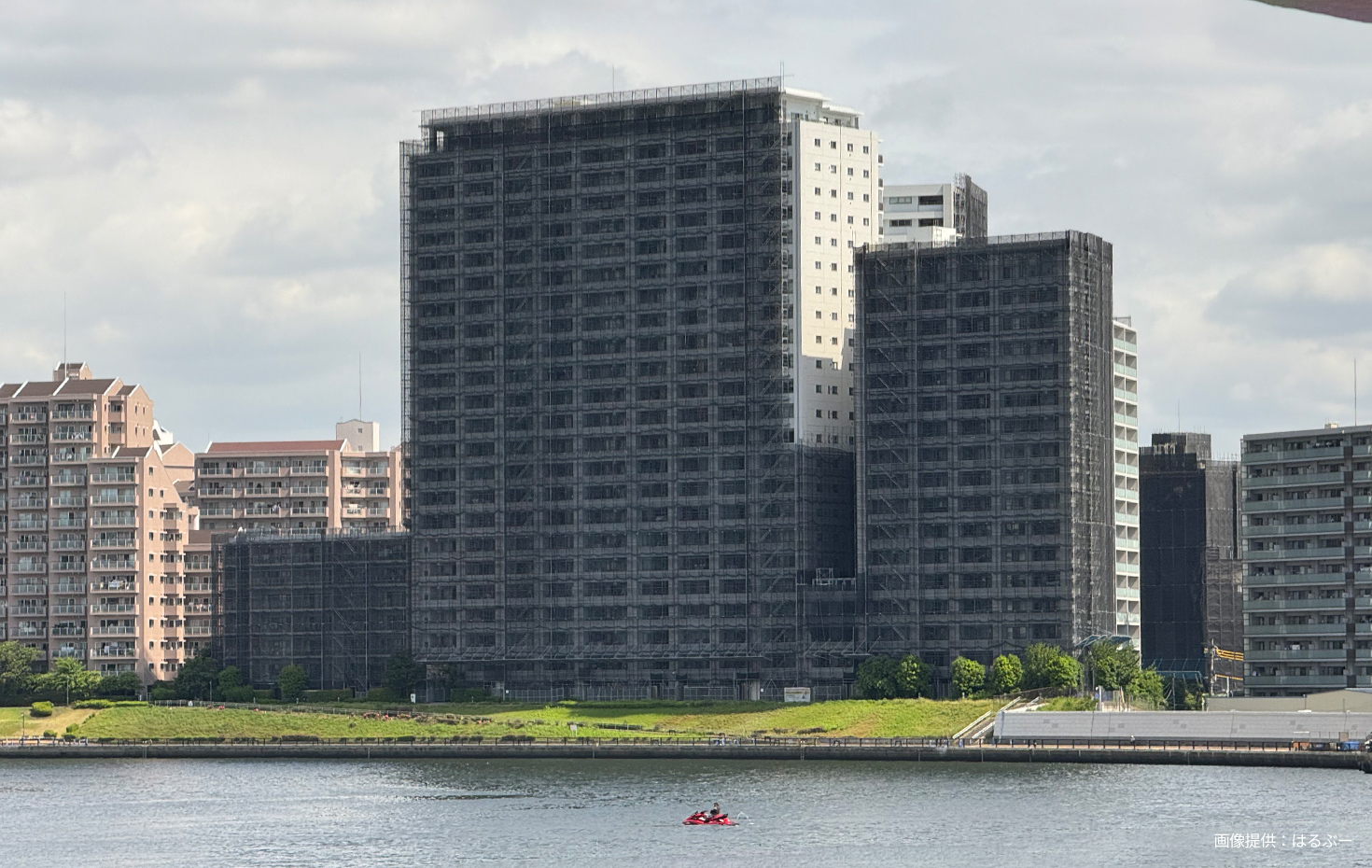 はるぶー:ただ、工事っていつでも始められるわけじゃないんです。外壁工事などで全面的に足場を組む場合、エアコンの室外機を取り外す必要があります。つまり、エアコンが欠かせない夏場の工事は難しい。うちの場合は、暑さが落ち着く秋口からスタートしました。2023年の10月から工事が始まり、戸数が多いため終了したのはおよそ1年後です。
