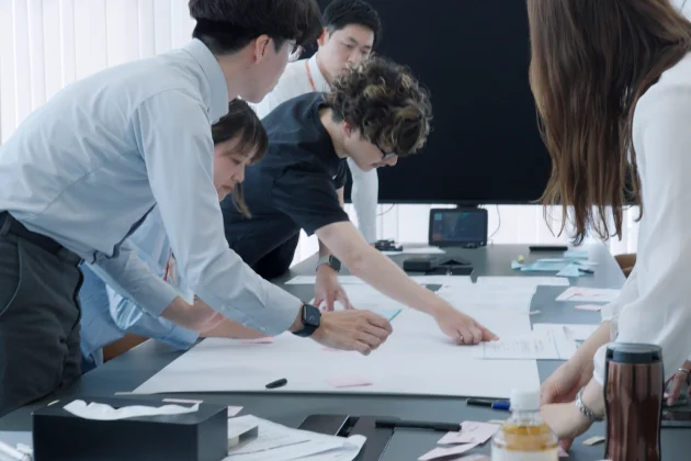 より自由に発想するために、最初に決めたルールは「アイデアを否定しないこと」。普段の業務とはまったく違って、とにかく誰かの意見に乗っかって広げていく。そんな空気が自然に生まれて、気づけば時間が足りなくなるほど盛り上がっていました。