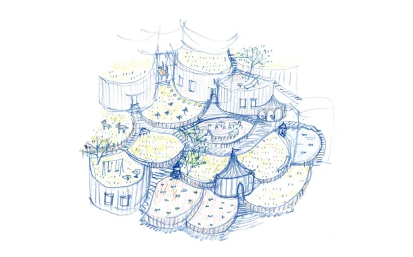私が最初に思い描いていた「棚田テラス」は、バルコニーが段々に連なる、立体的な集合住宅のイメージでした。ところがo+hさんとの対話の中で、「棚田とは、形そのものではなく、土地と人の営みが連続している状態なのではないか」という視点が示されたんです。