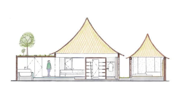 その言葉をきっかけに、発想が大きく変わりました。建物を棚田の上に載せるのではなく、建物そのものが大地の延長として立ち上がっていく。そんなイメージへと転換していきました。