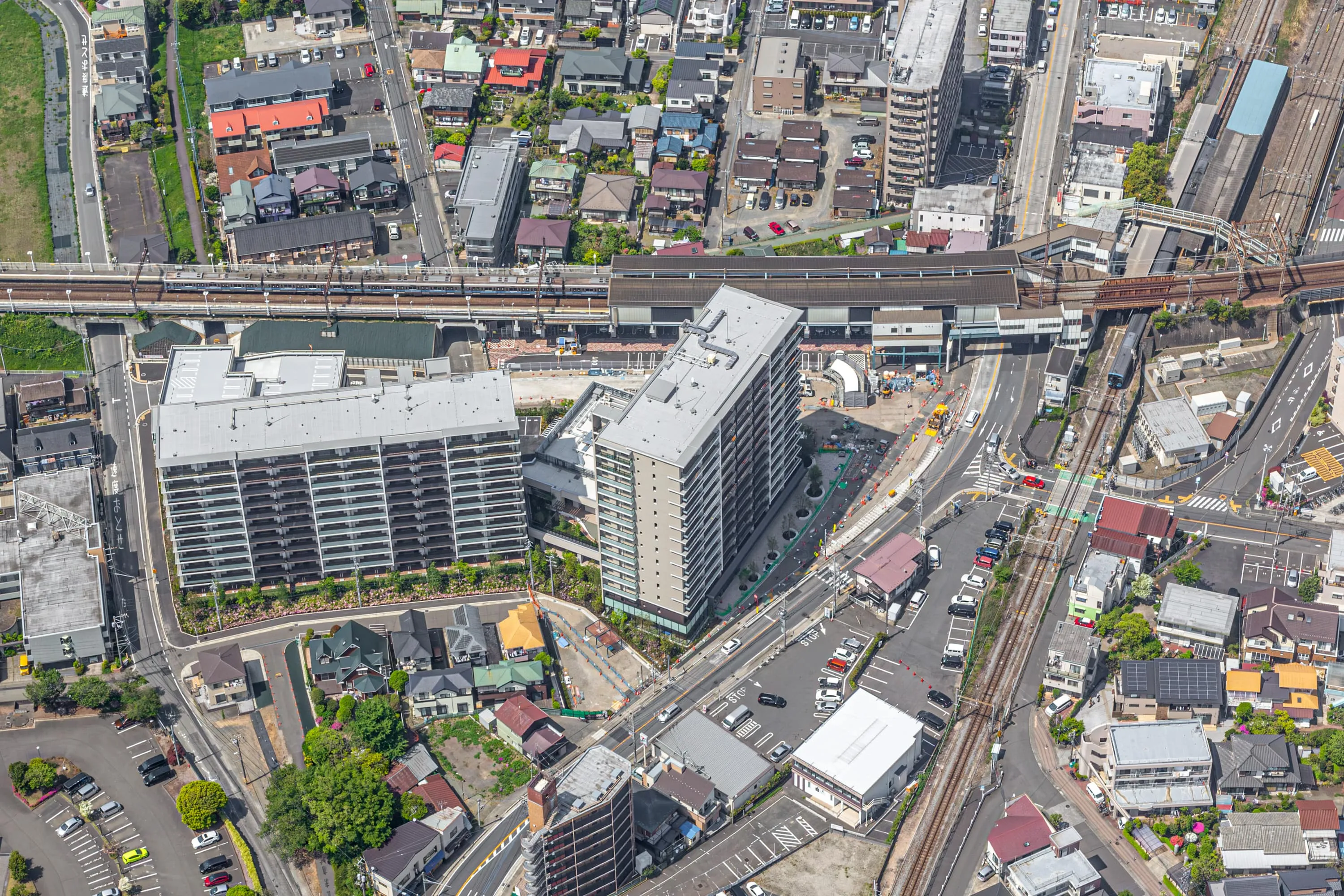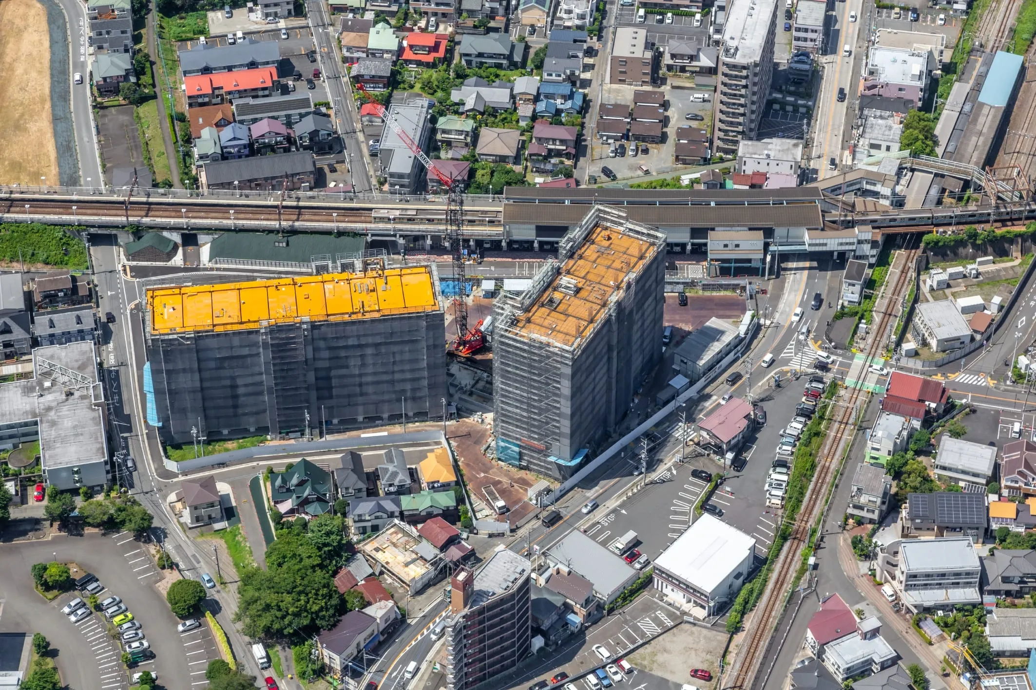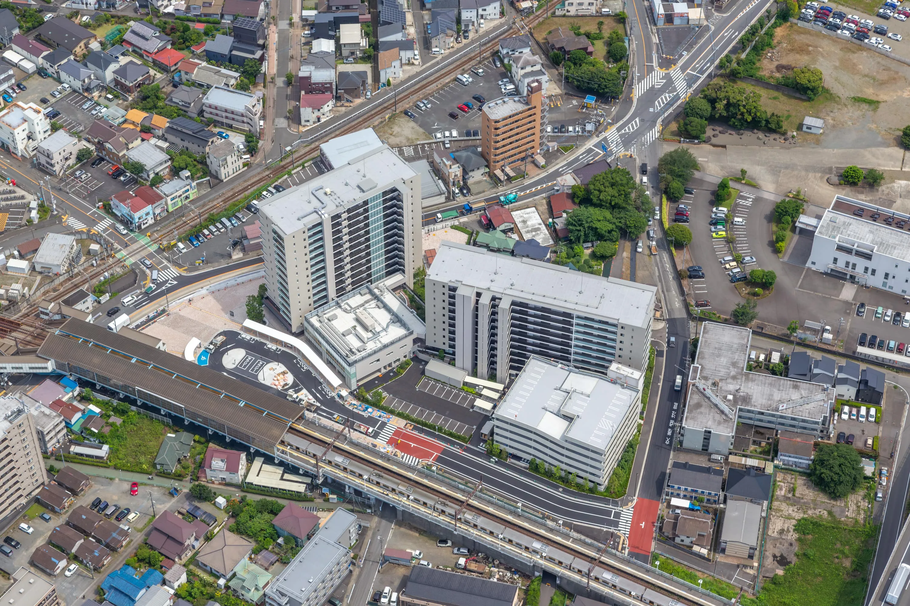 従前の厚木駅南地区は、老朽建物や空閑地が存在しており小売店舗の閉店や老朽化が進行、また、道路の幅員も狭く、駅前広場も未整備でした。そのため、本再開発事業では、厚木駅周辺の都市機能の更新と商業の活性化を図るため、駅前広場の整備、周辺道路の新設・再整備、商業及び居住機能の集積等を図り、地域交流拠点として駅前に相応しいまちづくりを行いました。