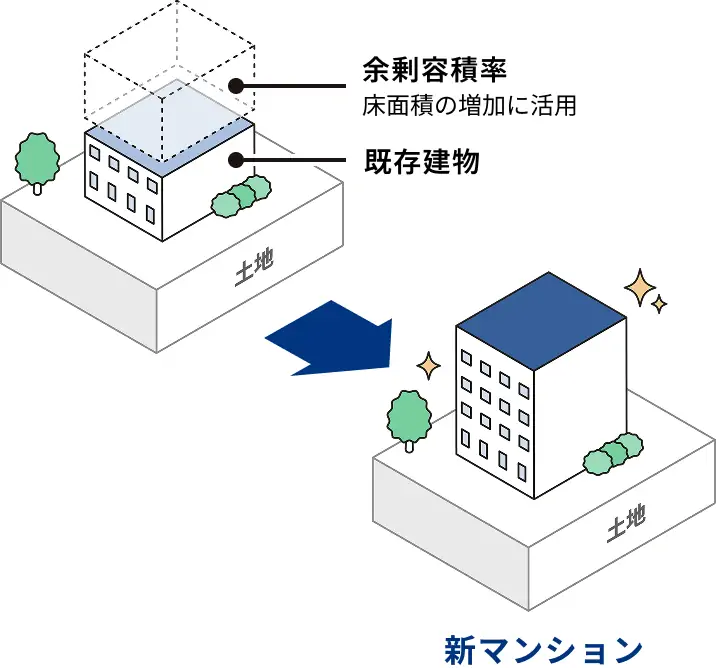 ※余剰容積率とは、既存建物で利用している許容容積率の未利用部分(未消化部分)をいいます。