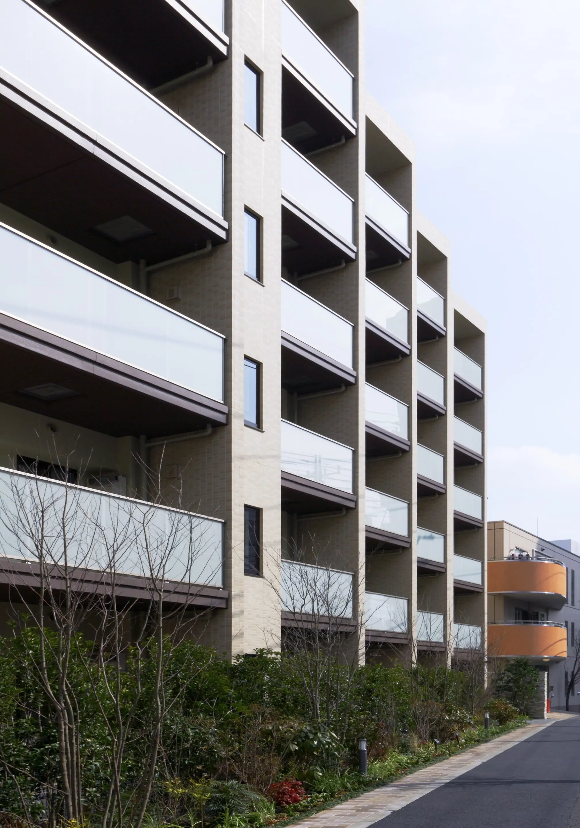 新しいマンションはアースカラーを基調とし、ベランダに硝子手摺を採用した落ち着きのある53戸のマンションへ生まれ変わりました。
