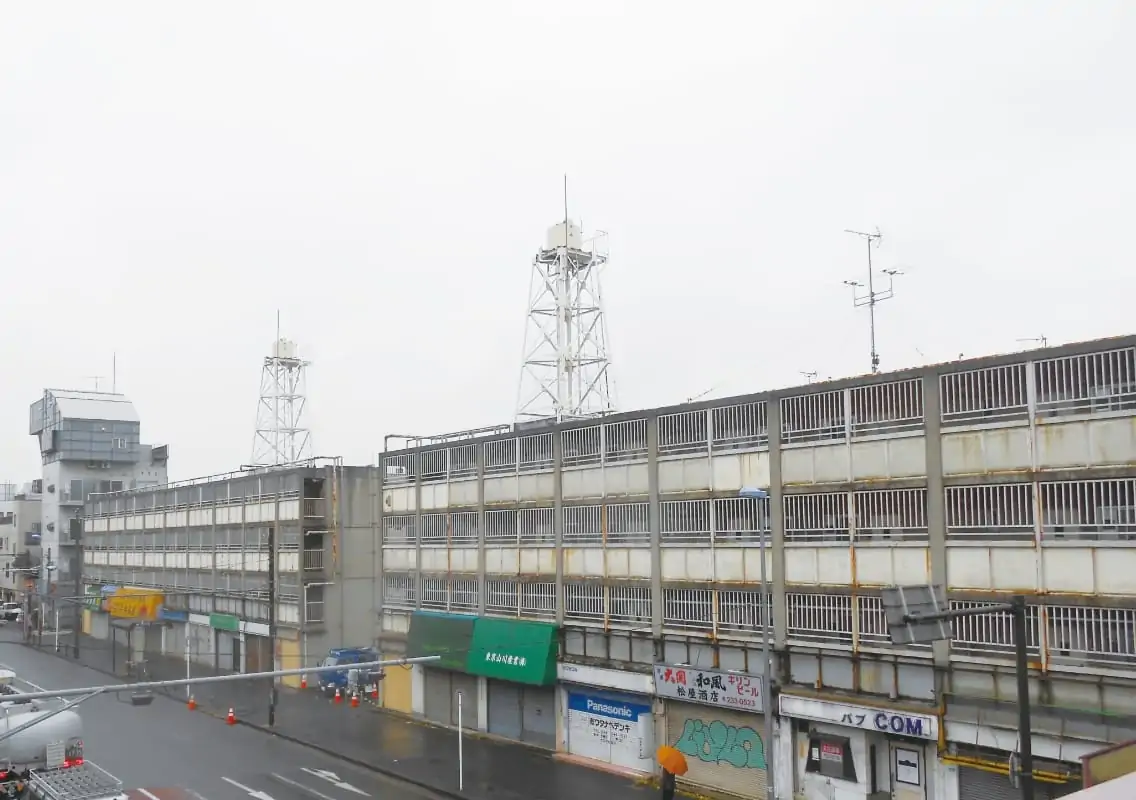 市営大島住宅は、1957~1959年に建設された川崎市所有の賃貸棟4棟を含む全7棟182戸の市営住宅でした。本建替事業の分譲棟1・2・7号棟は、1階に民間分譲店舗26戸、上部に78戸の住戸を有するいわゆる下駄履き住宅で、建物は区分所有で土地は市有地貸付契約による借地と、川崎市と民間との権利が混在している状態でした。