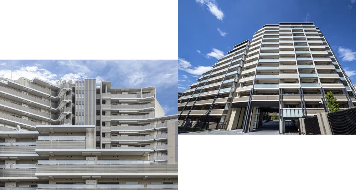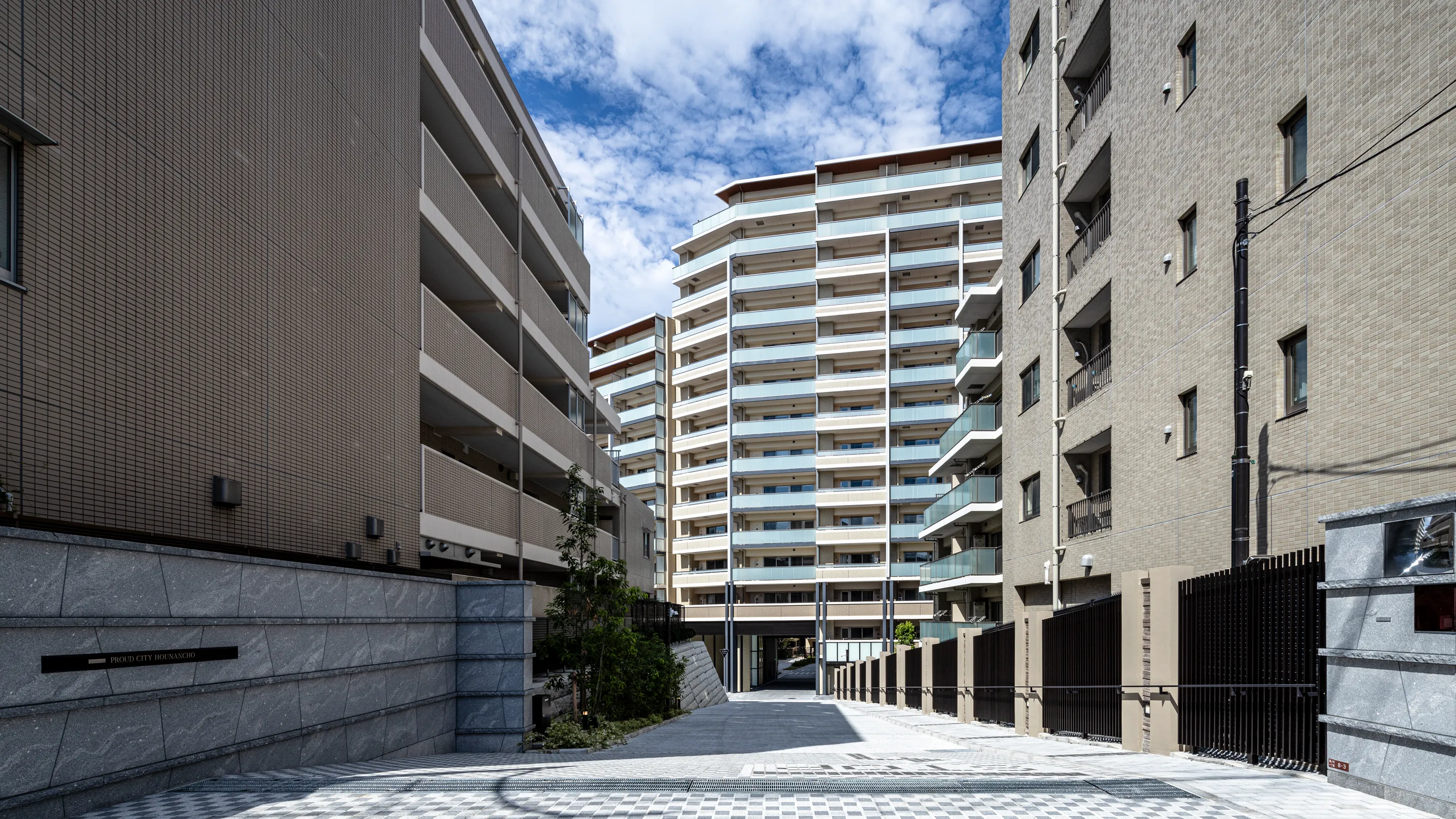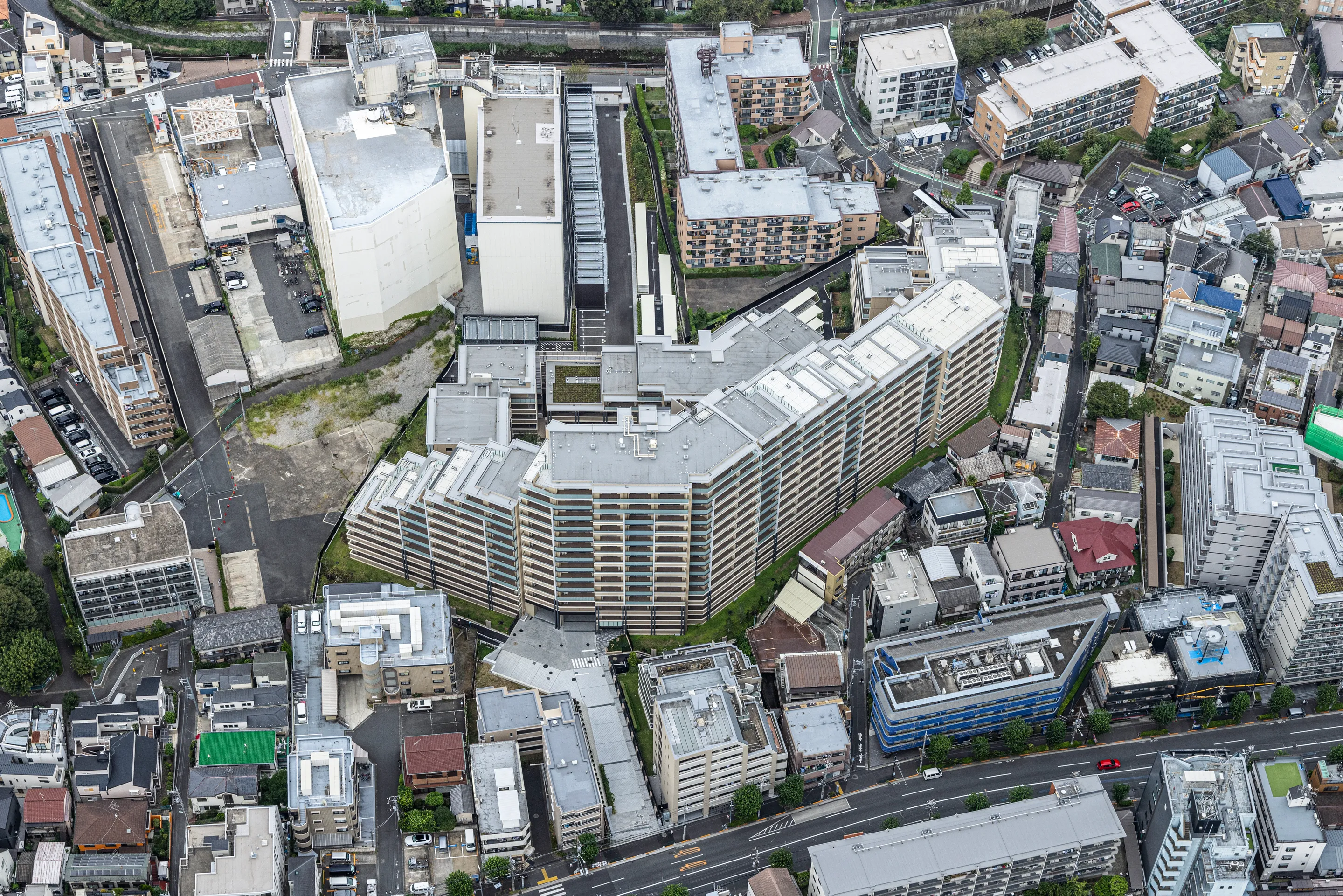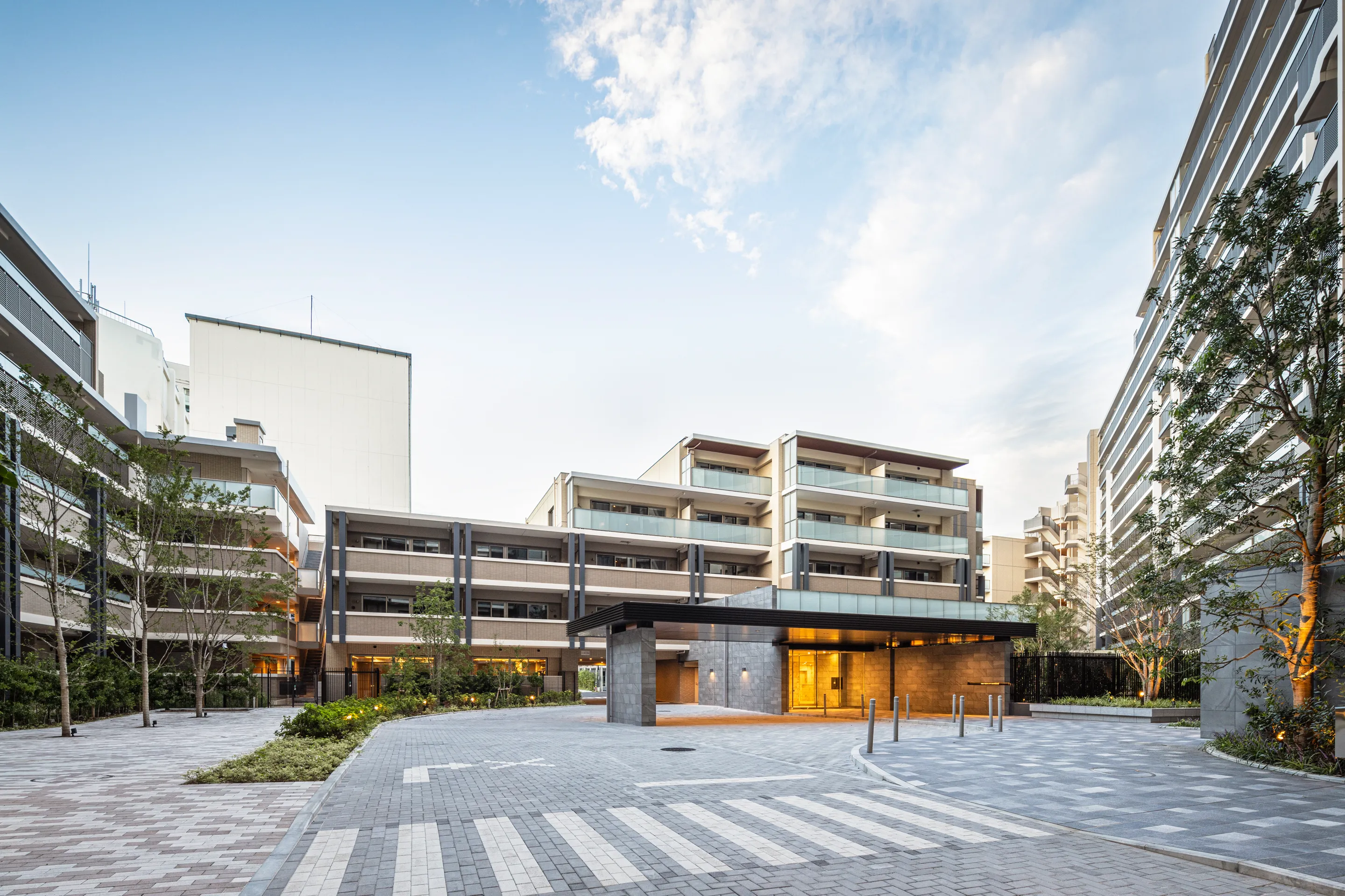 長谷工コーポレーションは、2019年10月に建設予定者として選定され建設を行いました。また、建替事業と合わせて敷地南側の区有通路を通り抜けできるよう高低差をなくし、地区内を縦断する古い下水管のやり替え工事も行い周辺地域の利便性向上にも寄与することができました。2024年9月、14階建て371戸の新マンションへの建替えが実現しました。