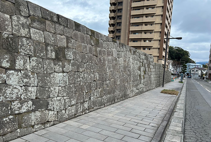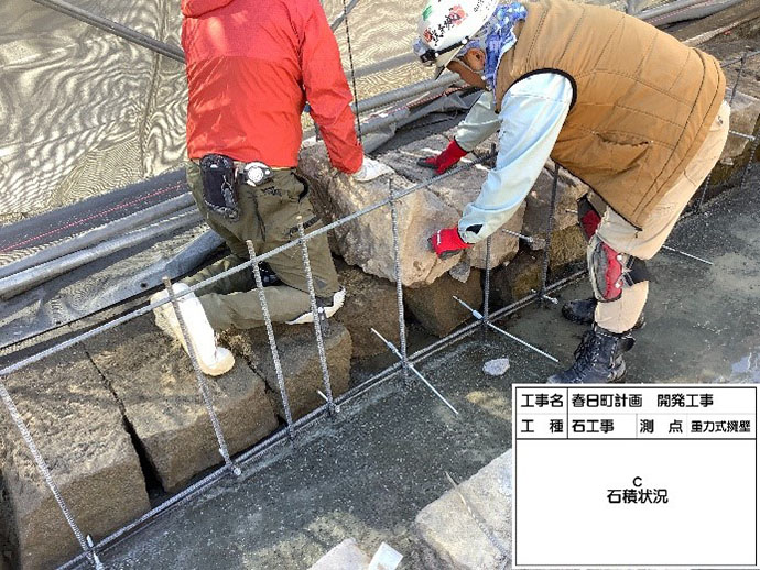 - 城壁等の石垣を復元する工法は多いものの、景観を守りつつ(見た目を変化させずに)安全性を向上させ現行の開発許可取得したのは国内初。
