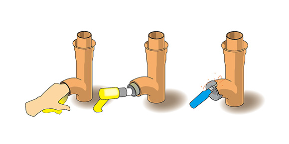 溝状のわだちを特殊塩化ビニル管にて排水枝管受口まで一体的にカバーし、漏水要因を排除する補修工法です。 -